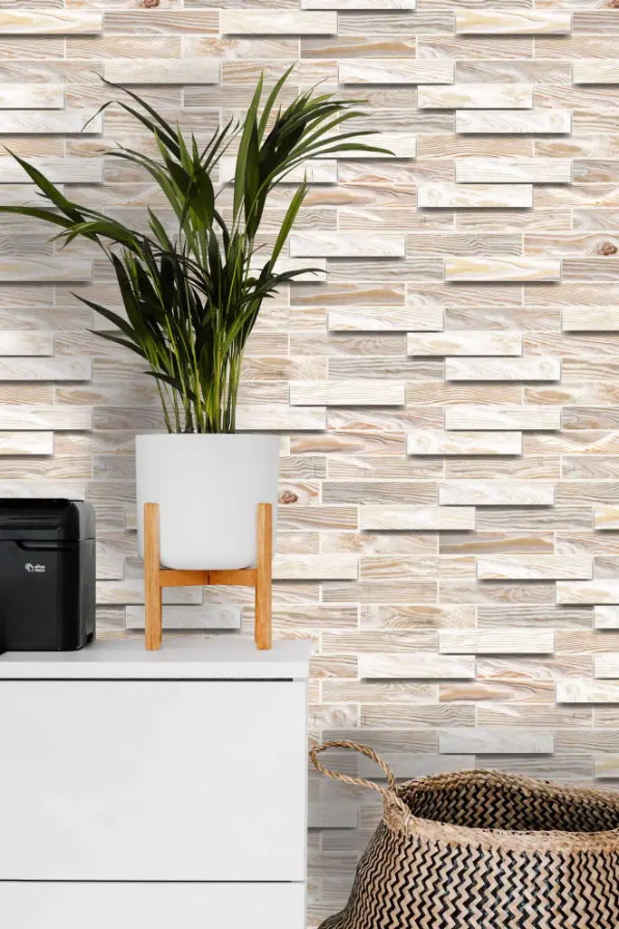 Off White Oak Steps 3D Wall Panels, Set Of 10, Covers 52.8 Sq Ft
