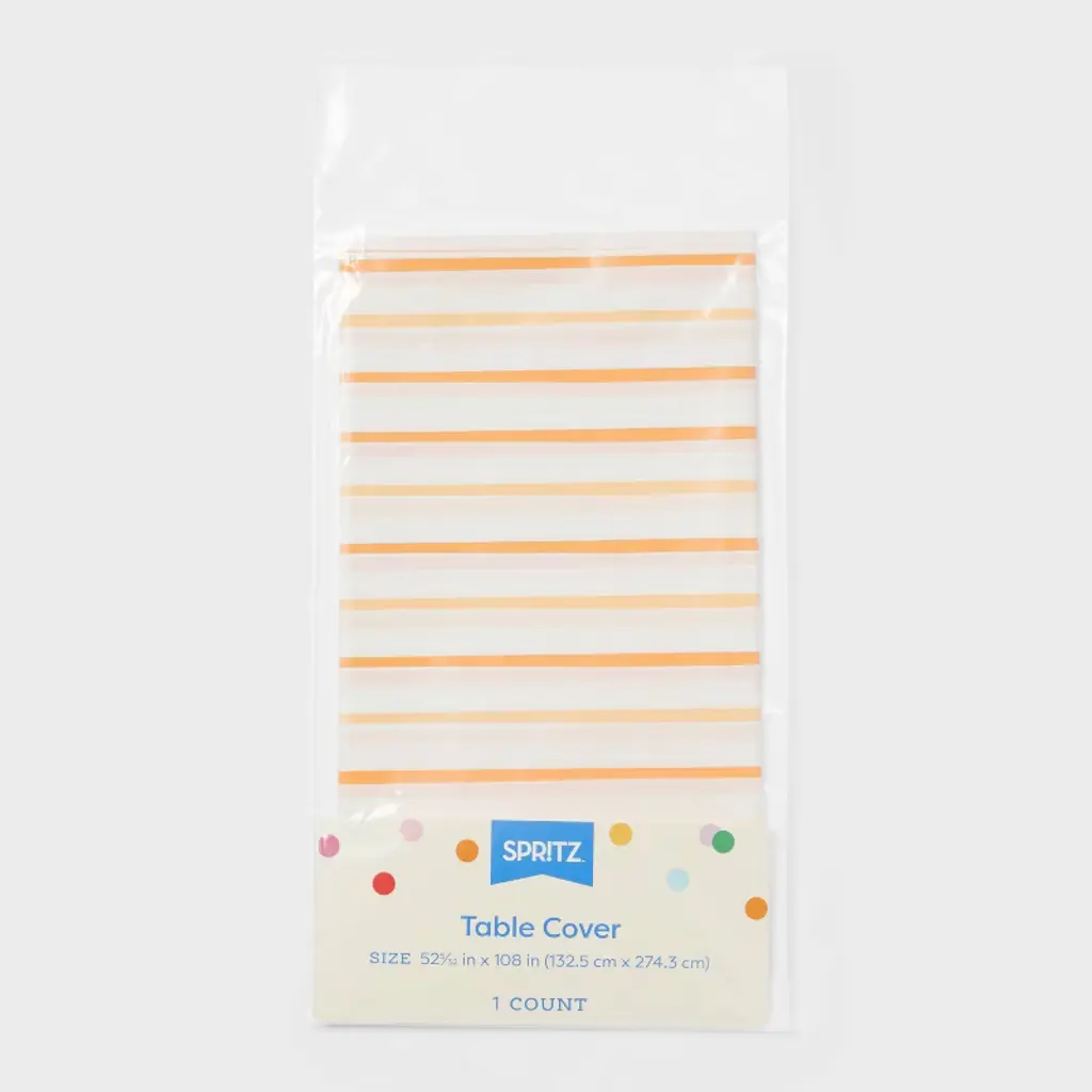 Bring a classic touch to your table with the Orange and White Stripe Table Cover from Spritz™. This stylish table cover features a timeless fun stripe design, perfect for any gathering. Made from durable polyethylene material, it ensures easy setup and hassle-free cleanup, so you can focus on enjoying the party. Whether it's a picnic, birthday, or casual get-together, this table cover adds a charming vibe to your event.Spritz™: Pops of joy that make the moment™.