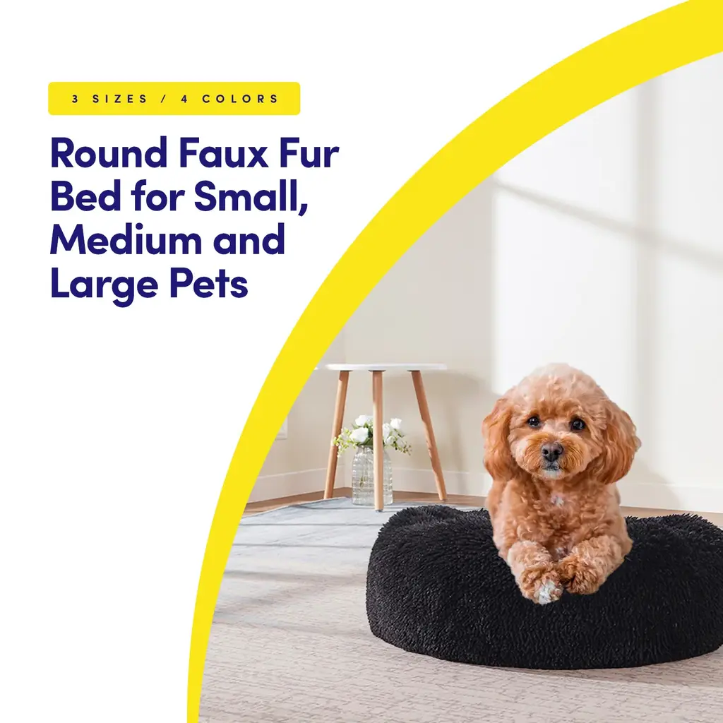 Orthopedic Pet/dog Bed "Teddy" - M, Fluffy Dark Grey Removable & Washable Cover - Black