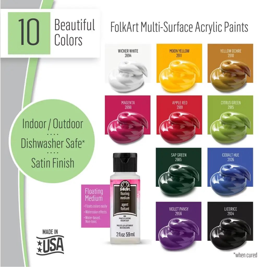 The FolkArt One Stroke A-Z 50 Florals Kit from One Stroke creator Donna Dewberry is everything you’ll need to learn to paint beautiful flowers. From asters to zinnias, Donna’s methods and guides give you the encouragement and training you need to recreate the flowers found in nature. This comprehensive kit contains 10 two-fl ounce FolkArt multi-surface paints, one two-fl ounce FolkArt Floating Medium, five One Stroke paintbrushes, 50 UV-coated Reusable Teaching Guides and a paintable wood storage box that you can customize. The full-color reusable teaching guides provide plenty of detail to reference any time and Donna’s FREE YouTube video lessons add another layer of careful instruction. You can also practice your brushstrokes directly over Donna's while you learn the paint technique she’s sharing with you. No need to attend classes. Learn to paint flowers the One Stroke way whenever and wherever its convenient for you.
