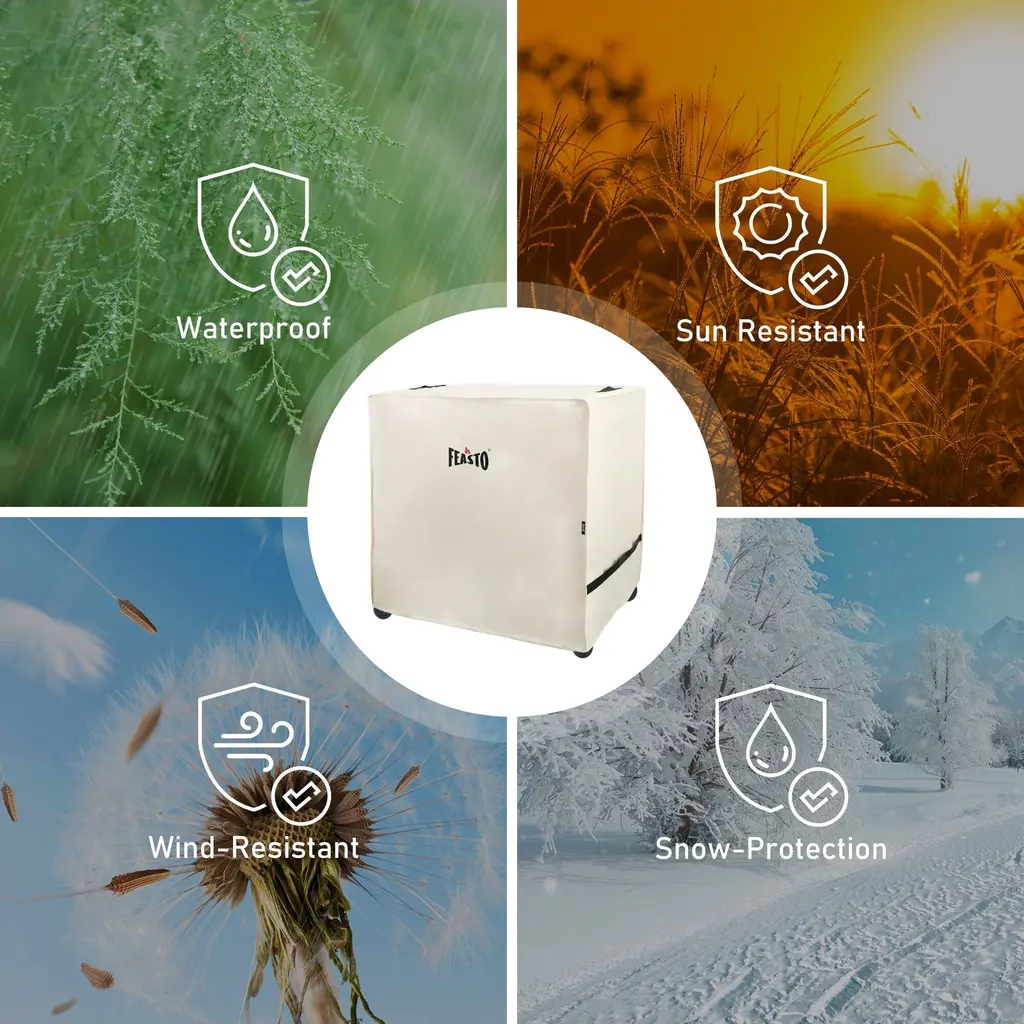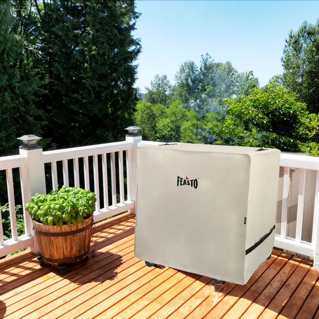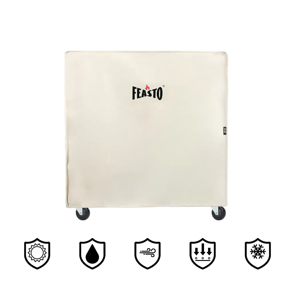 FEASTO Outdoor provides a wide range of grill accessories such as grill cover, which is on the purpose of caring your cherished grill in the yard. A qualified fabric cover can not only protect the surface of your grill from the season change with rainy,sunny,windy, snowy, but also extend the usage years of your grill. Features:1. Feasto L36”xW26.5”x H35” cover is designed to fit the 3-Shelf Outdoor Steel Table Cart. ASIN:B0CDGDJJF9. And it also works with most grill cart.Please kindly measure your grill before ordering.2. The heavy oxford cloth with PVC coated lining material allows the cover to be used all year round in the yard, waterproof, sun resistant, wind resistant and snow protection.3. Two oxford cloth handles by sides provides a convenient removal when using the table. Also quiet obvious when covering back to the cart by recognizing the side position.4. The bottom sides are designed with two adjustable velcro straps, which hold the cover tightly onto the cart. Even the strong wind will not blow it off.5. Oxford surface and coated lining are both impermeable to water.6. If you want to cover in on any other outdoor grills or cart, please measure the size. It is widely applicable.