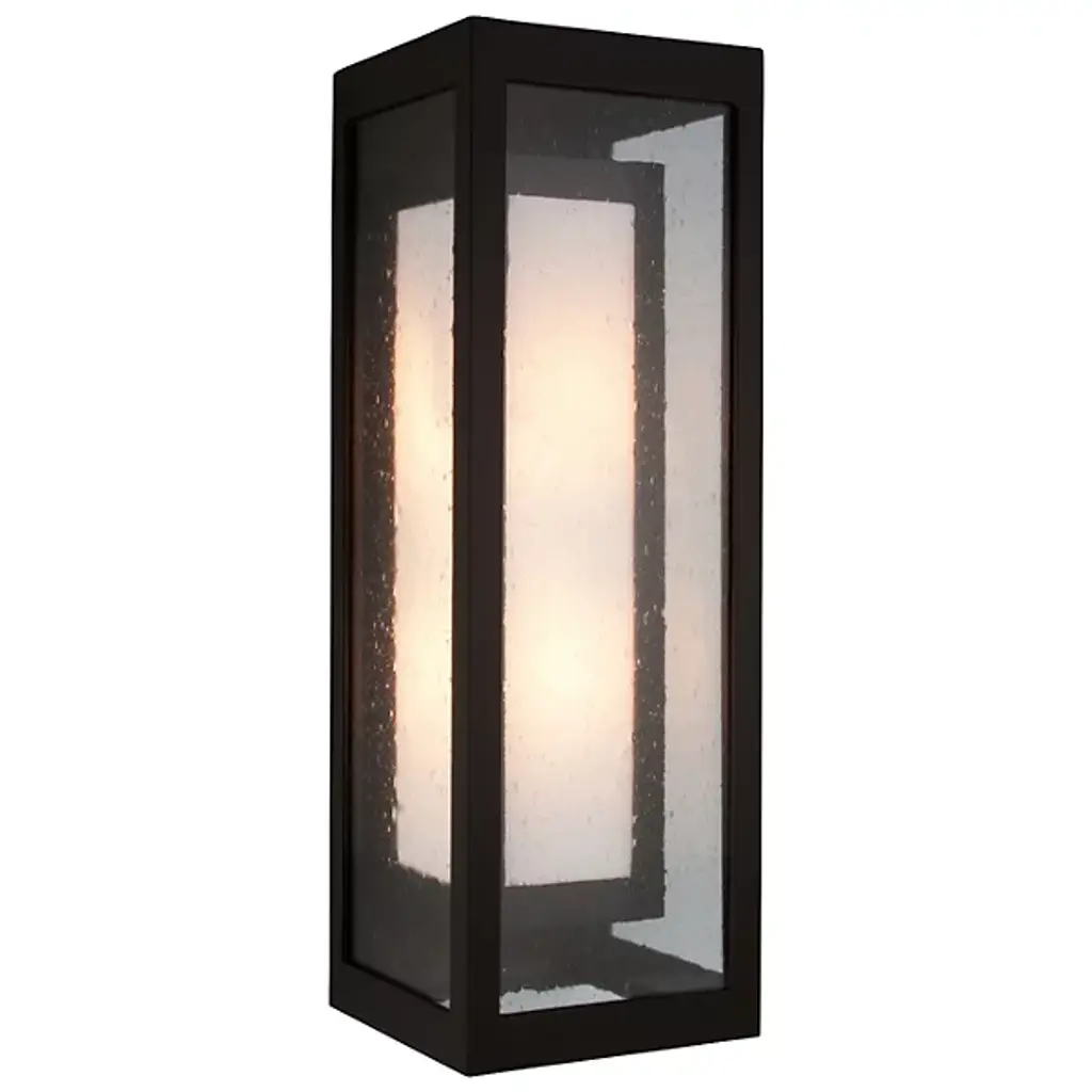 Sleek, straightforward and tough. The Hammerton Studio Outdoor Double Box Wall Sconce is a fixture made to last in wet environments while casting ample, wide scale illumination to light your way through the dark. Made from clear seeded glass with an inner frosted seeded glass pane, the Double Box Wall Sconce delivers brilliant luminance with heavy-duty protection from the elements. This product is handcrafted with aluminum and made in America.