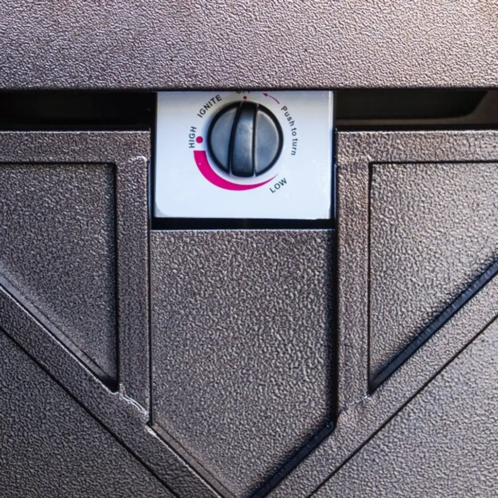 This antique bronze fire pit is sure to blend in beautifully with your patio décor / furniture. The solid construction is incredibly durable and a hammered bronze finish gives it a rustic look that suits outdoor living. This Fire Pit offers A battery-operated pulse ignition while emitting up to 40,000 BTU's of heat. Clear fire glass come with the unit to cover the burner and adds a touch of elegance. An easy access door located at the base allows you to conceal a 20 lb. propane tank. And for your added safety, this fire pit comes with a thermocouple flame failure device and is CSA approved. This Fire Pit Includes cover for the flame area.
