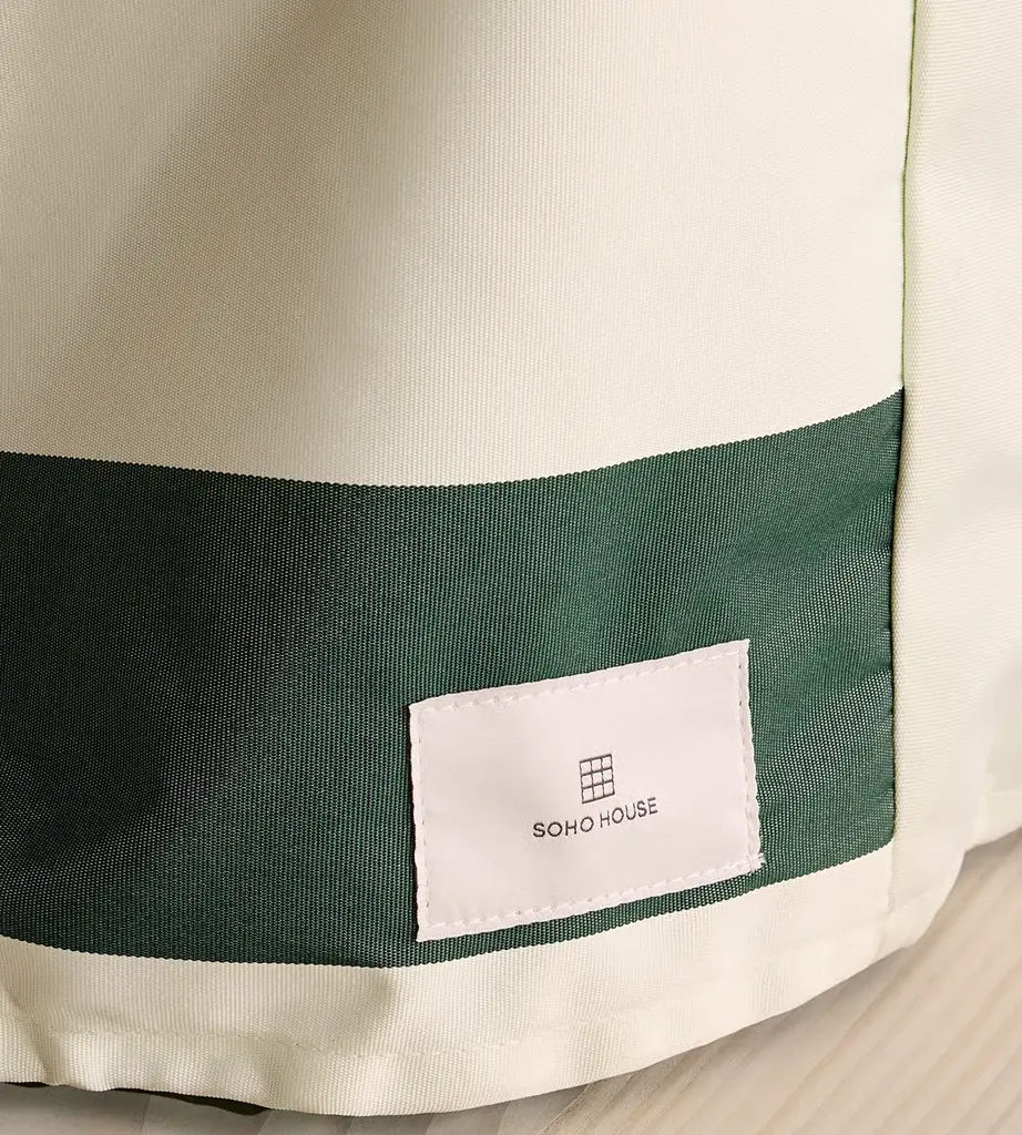 Crafted from waterproof material to keep outdoor furniture protected from the elements. Made to fit any of our round outdoor dining tables, this striped cover is crafted from durable, waterproof materials to guard against rain damage and prevent fading from the sun. A secure internal drawstring at the base ensures a snug, protective fit.