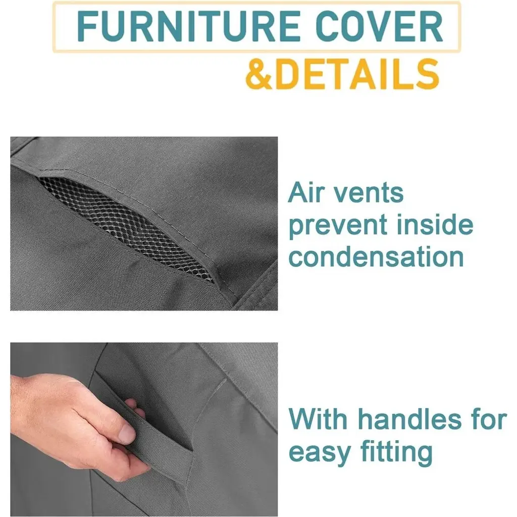 Shield your patio set from the elements with our Premium Waterproof Furniture Covers. Engineered with a robust fabric, these covers offer defense against rain, snow, and UV rays, ensuring your outdoor setup remains pristine. The smart design includes air vents to prevent condensation and wind lofting, while the reinforced handles aid in easy placement and removal. Our covers' adjustable features promise a tight hold, even on breezy days.Features:Please Note: Measure your furniture for the perfect cover fit and choose from our selection of sizes to match your needs.