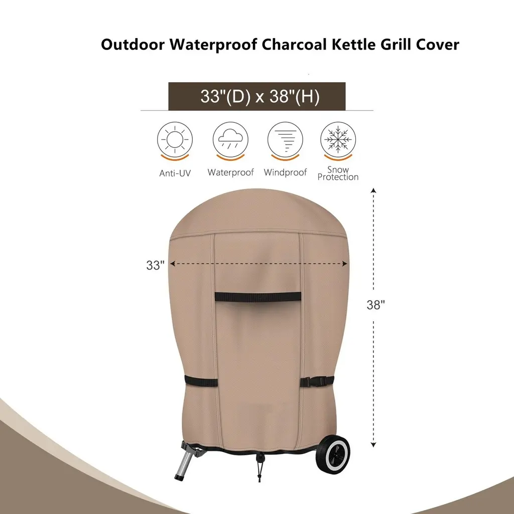 Outdoor Waterproof Charcoal Kettle Grill Cover - 33"d X 38"h