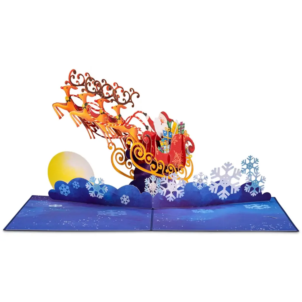 Paper Love 3D Santa Sleigh Pop Up Christmas Card For Him, Her, Kids, Adults, 5" X 7" Cover - Includes Envelope And Note Tag