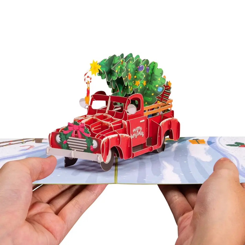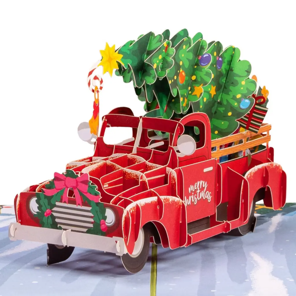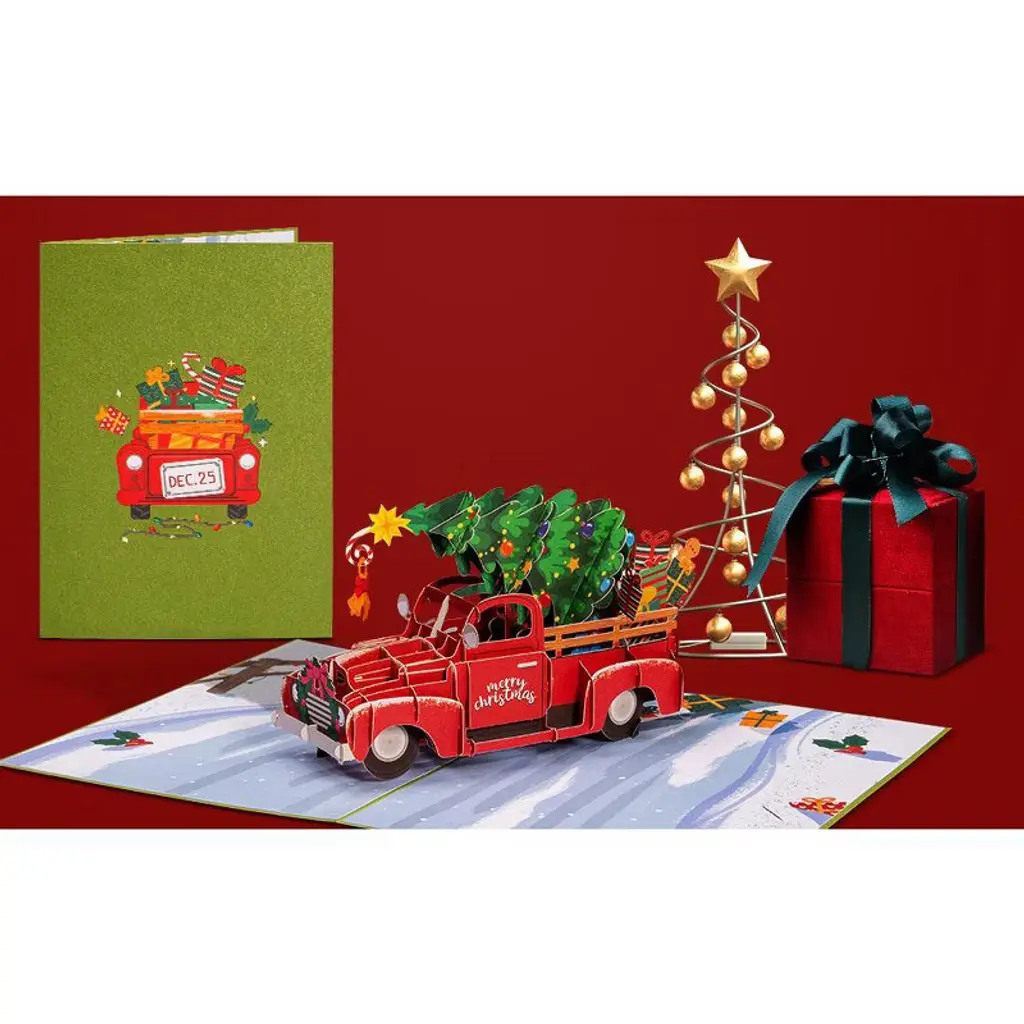 Celebrate the festive spirit with the Paper Love 3D Christmas Car Pop-Up Card! This beautifully designed card features a charming red car carrying a decorated Christmas tree, perfectly capturing the joy of the holiday season. The card opens to reveal an eye-catching 3D pop up scene that brings the design to life. Perfect as a greeting or gift for mom, dad, friends, family, or far-away loved ones, this card adds a touch of magic to the season and makes for a memorable keepsake!