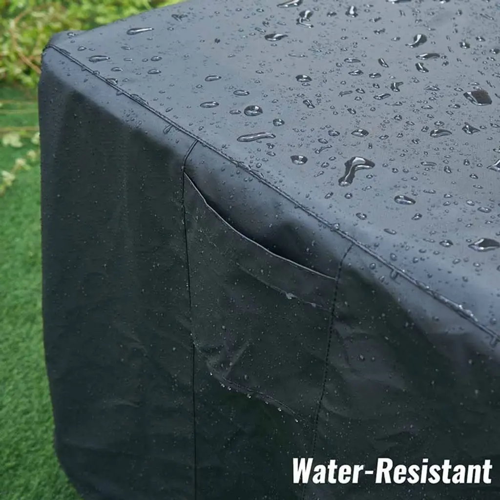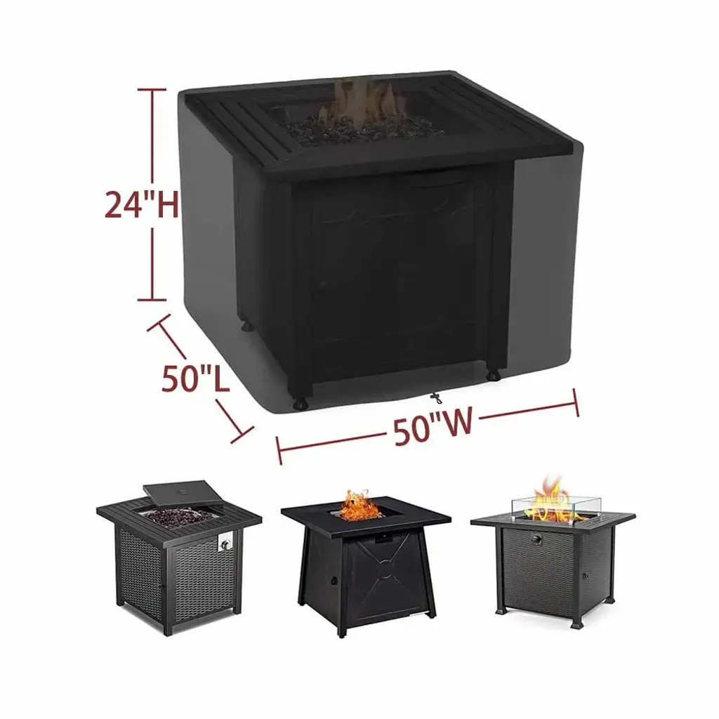 Keep your outdoor fire pit table protected from the elements with our Waterproof Fire Pit Cover. Made with commercial grade 420D density polyester and PVC coating, this cover is 100% waterproof and weatherproof, ensuring your fire pit stays protected from rain, snow, sun, and dirt year-round. The adjustable draw-string provides a custom-like fit while the mesh vent allows breathability and prevents moisture and condensation. With two handles for convenience, this fire pit cover is perfect for patio, backyard, deck, porch, or lawn use.Features:Other sections: