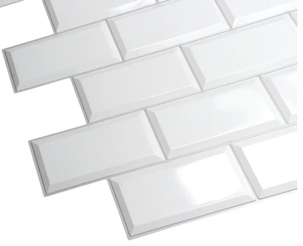 Pearl White Tile 3D Wall Panels, Set Of 5, Covers 25 Sq Ft