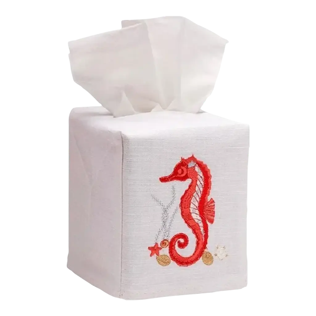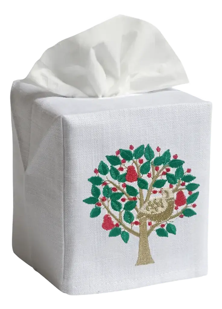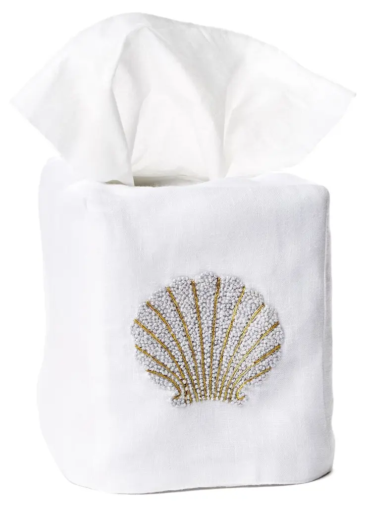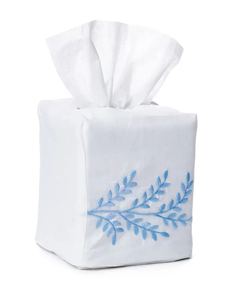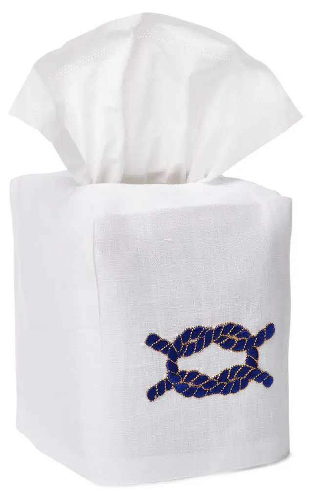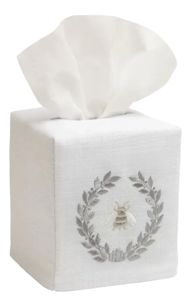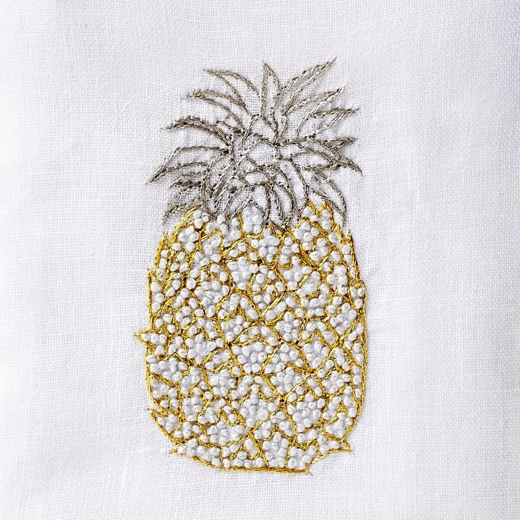 Offered exclusively through One Kings Lane, this exquisite tissue box cover is made from crisp white linen and hand-embroidered with a charming pineapple motif.