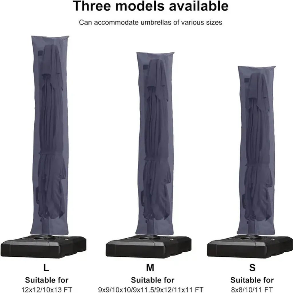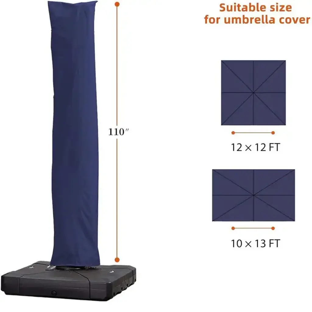 The PURPLELEAF patio umbrella cover fits most of the outdoor patio umbrella perfectly. It is tough enough to protecting your cantilever umbrella, which effectively resistant to rain, wind, hail, snow, dust, fallen leaves, insects and bird droppings. The sturdy zipper, easier to pull up and down, good sealing after closing. Note: Please measure your umbrella dimensions for proper fit. Size may be 1-7mm inaccuracy due to hand measure. S-size for Umbrella:Round : 10 , 11 FTM-size for Umbrella:Round : 12 , 13 FT. Square : 8x8 , 9x9 , 10x10 , 11x11 FTRectangle : 09x11 , 09x12 , 10x12 FTL-size for Umbrella:Square 12FT Rectangle 09x12 , 10x13 FT