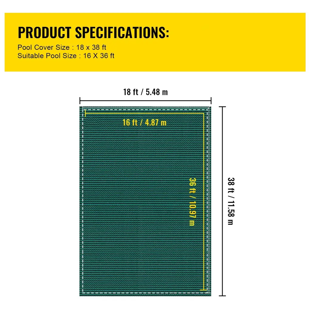 Rectangular Inground Pool Cover Mesh Winter Safety Cover Green - 16 X 36 Ft