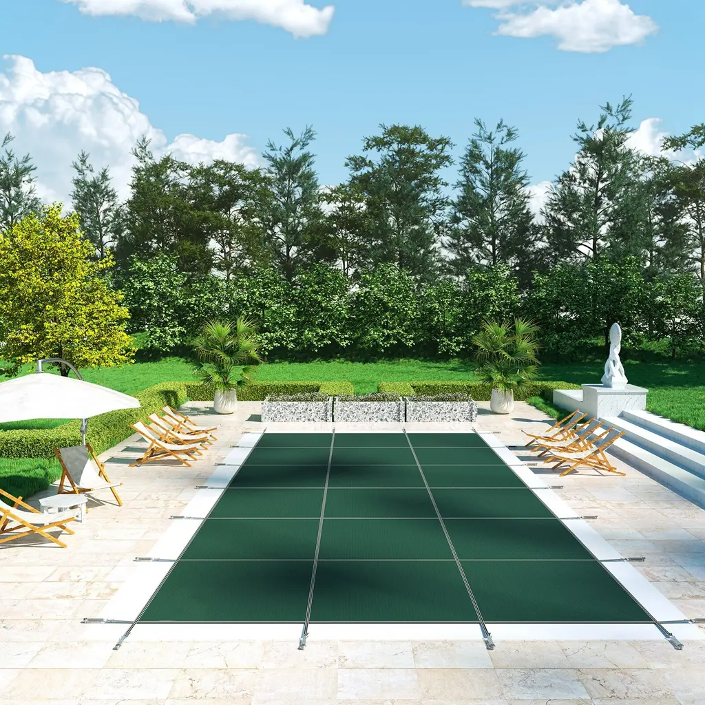 Rectangular Inground Pool Cover Mesh Winter Safety Cover Green - 20 X 40 Ft