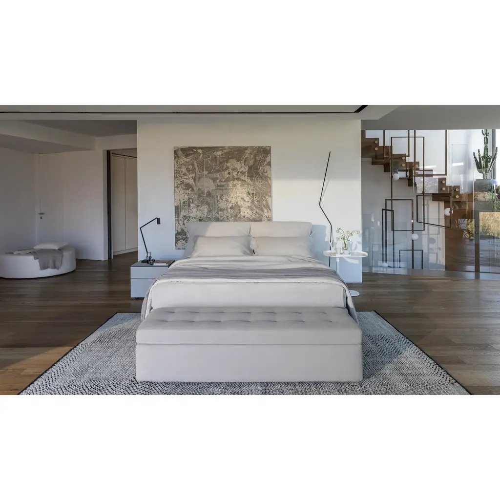 The Nathalie Queen bed is an icon of design and luxury. With its unmistakable bows, completely removable covers, and adjustable headboard, it offers unparalleled comfort and style. Choose from a variety of upholsteries and base options, including rigid, box-spring, storage, and electric movements. Rest in both comfort and sophistication with this premium bed. Bed shown and pricing is for rigid base only.