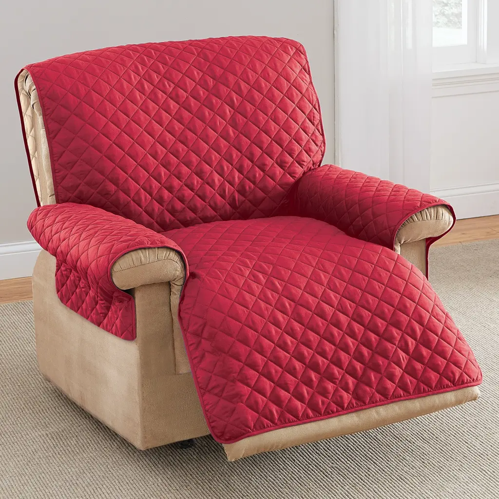 Now you can protect your upholstered furniture from spills, stains and shedding pets. These reversible, quilted covers enhance the comfort of your furniture, and let you clean up all the messes of daily life in no time. Machine wash. Polyester; imported. Available in six color options: Chocolate/Tan, Olive/Sage, Burgundy/Taupe, Dark Blue/Light Blue, Black/Gray and Red/Cream. Available for Sofa (68"W seat width, 21"L arm flap, 39"H back flap) Loveseat (46"W seat width, 21"L arm flap, 39"H back flap) Jumbo Recliner (32.5 seat width, 25" arm flap, 52" back flap) Recliner (23"W seat width, 21"L arm flap, 49"H back flap) and Chair (23"W seat width, 21"L arm flap, 39" back flap)