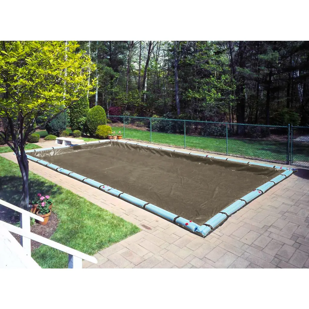The Robelle Premium Mesh XL Winter Cover is a premium mesh polyethylene cover for in-ground pools. It allows water to pass through the cover while keeping out debris. Mesh covers require less maintenance during the winter months compared to traditional pool covers. This cover includes an extra-large five-foot overlap. Please order by pool size, as the overlap goes beyond the pool size listed. Please order a larger size cover if you have steps (or any other irregularity) protruding from your pool. The cover should be able to comfortably float on the pool water without excessive stress. Premium mesh polyethylene cover Allows water to pass through the cover while keeping out debris Brand: Robelle Model: 4243R Materials: Polyethylene Color: Blue/ black, taupe/ black Dimensions: 16 foot x 32 foot to 30 foot x 60 foot rectangular pools Weight: 22 pounds-32 pounds (varies by size)