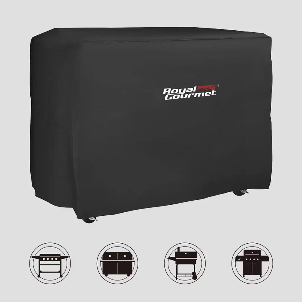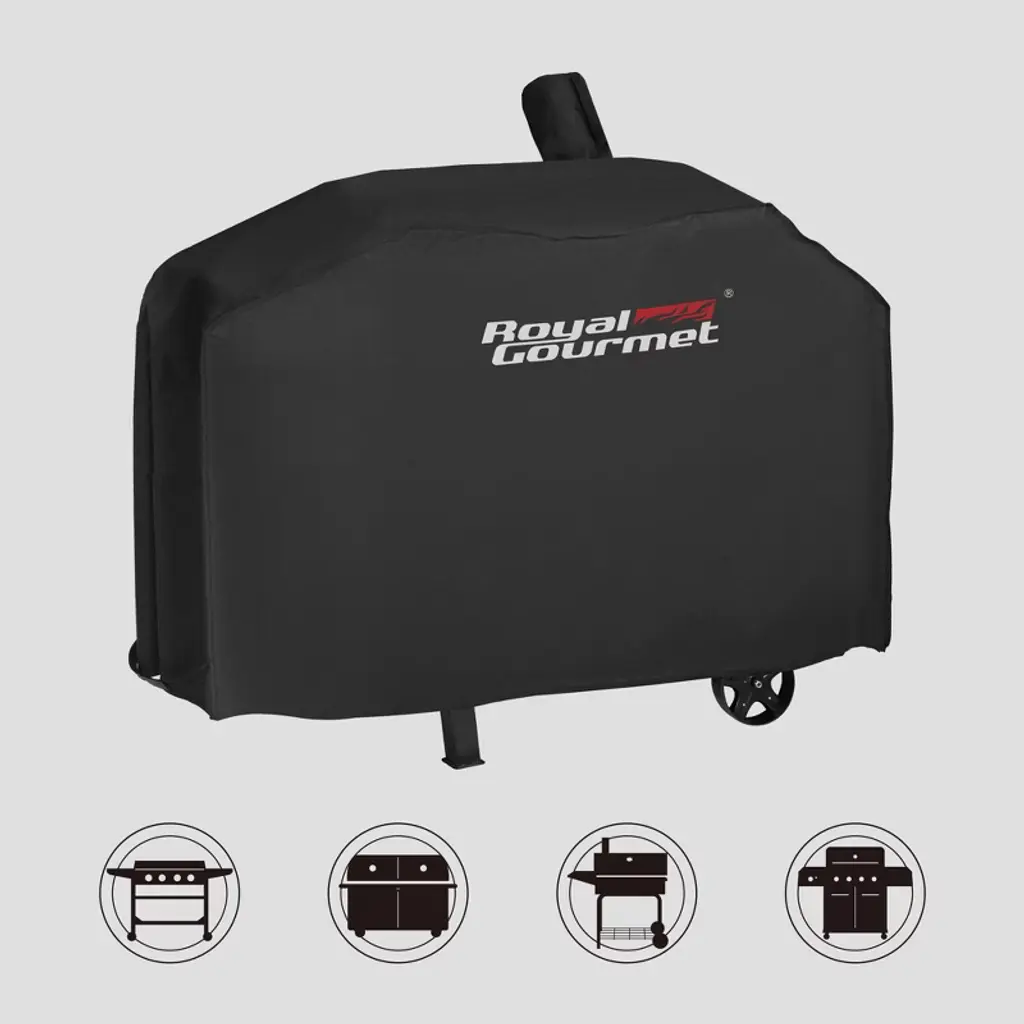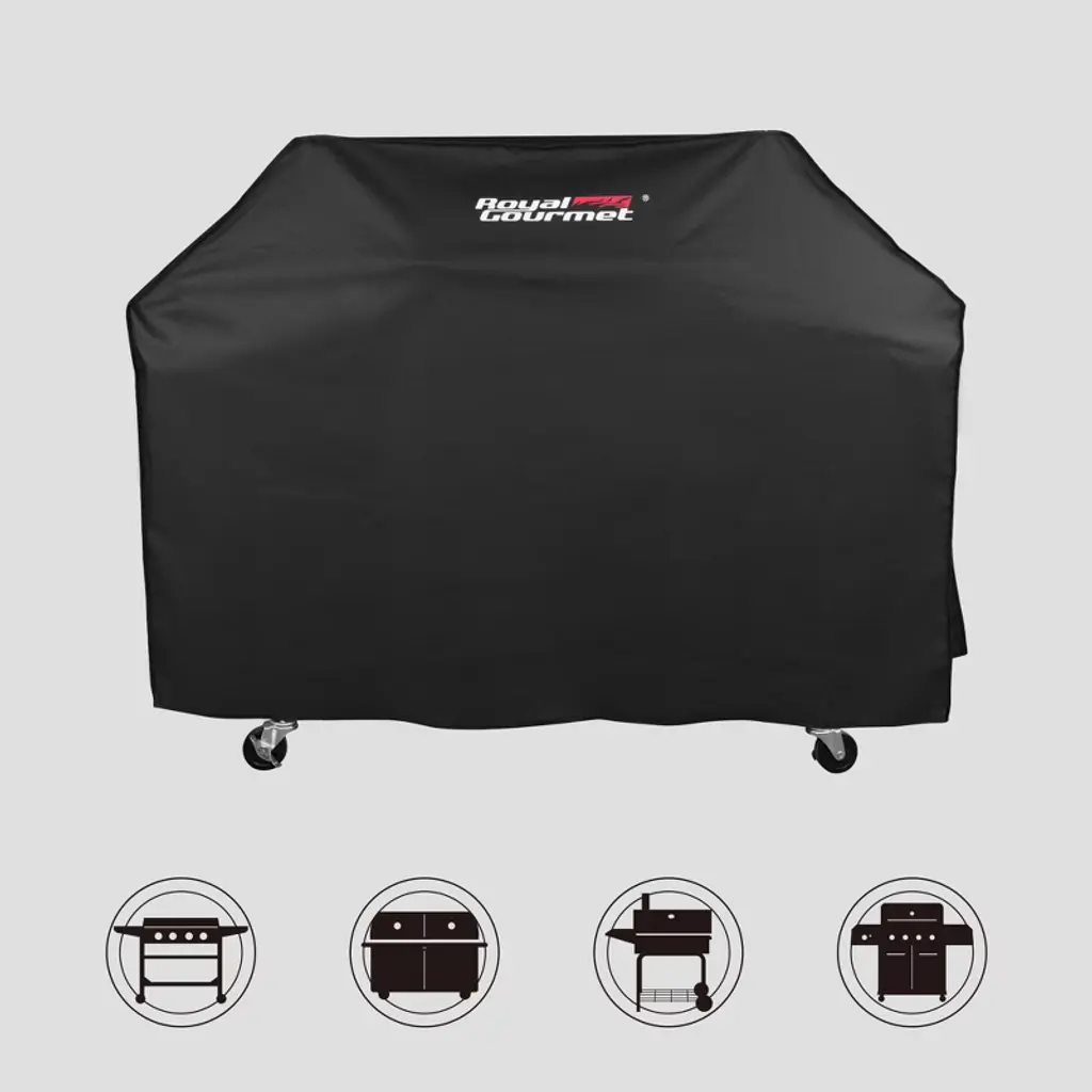 Royal Gourmet Black Oxford Fabric Outdoor Grill Cover is designed to protect your grill from unwanted natural elements like water spots, dust, dirt, etc. It's made of durable polyester oxford that keeps the grill covered in different weather. Sturdy, adjustable velcro straps help keep the cover in place on windy days. Product Features:1. Fit for Royal Gourmet Grill Model no.: GB2000, GB4000. We offer covers of more sizes and shapes, please measure your grill before purchase.2. Durable polyester oxford with water resistant coating. 3. The tough fabric provides protection from unwanted weather elements for all seasons.4. Velcro closure straps at two sides fasten the grill better and prevent the cover from blowing off.Easy to clean with outstanding durability.