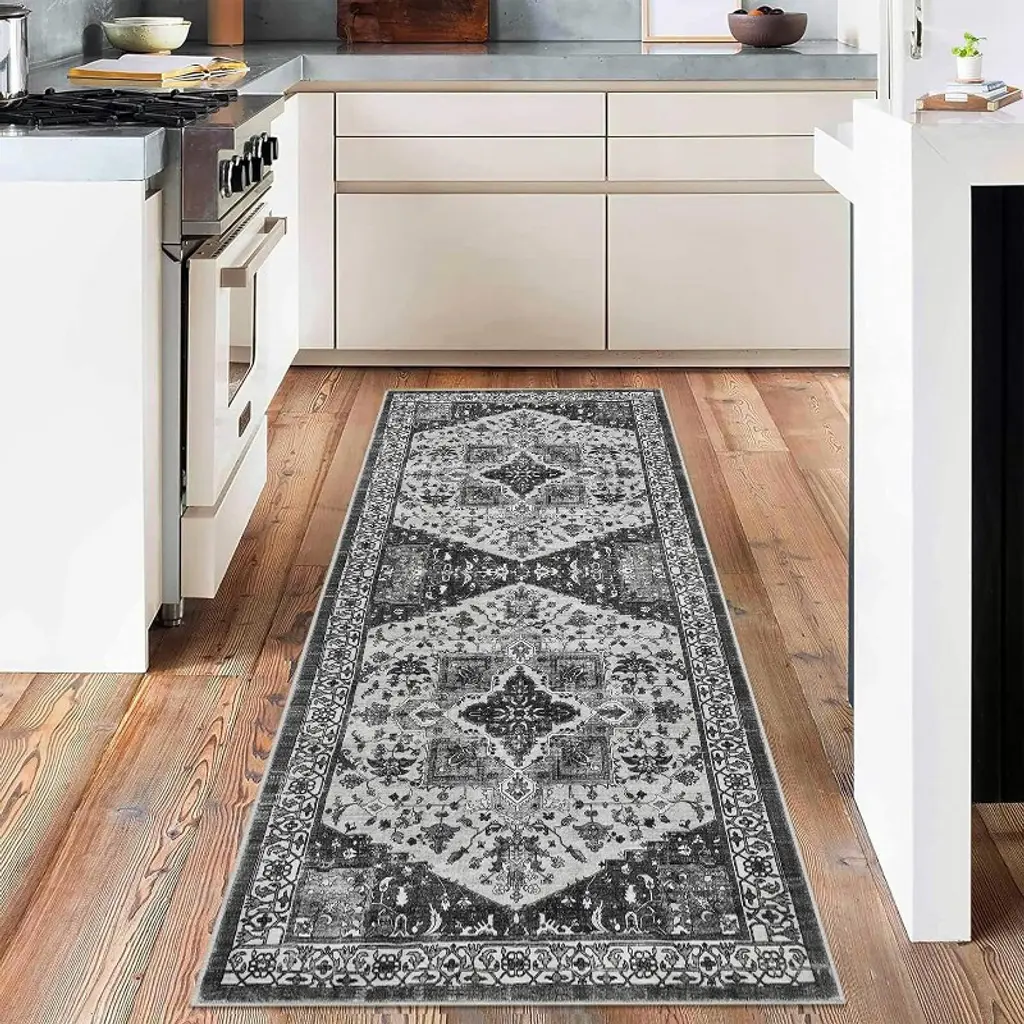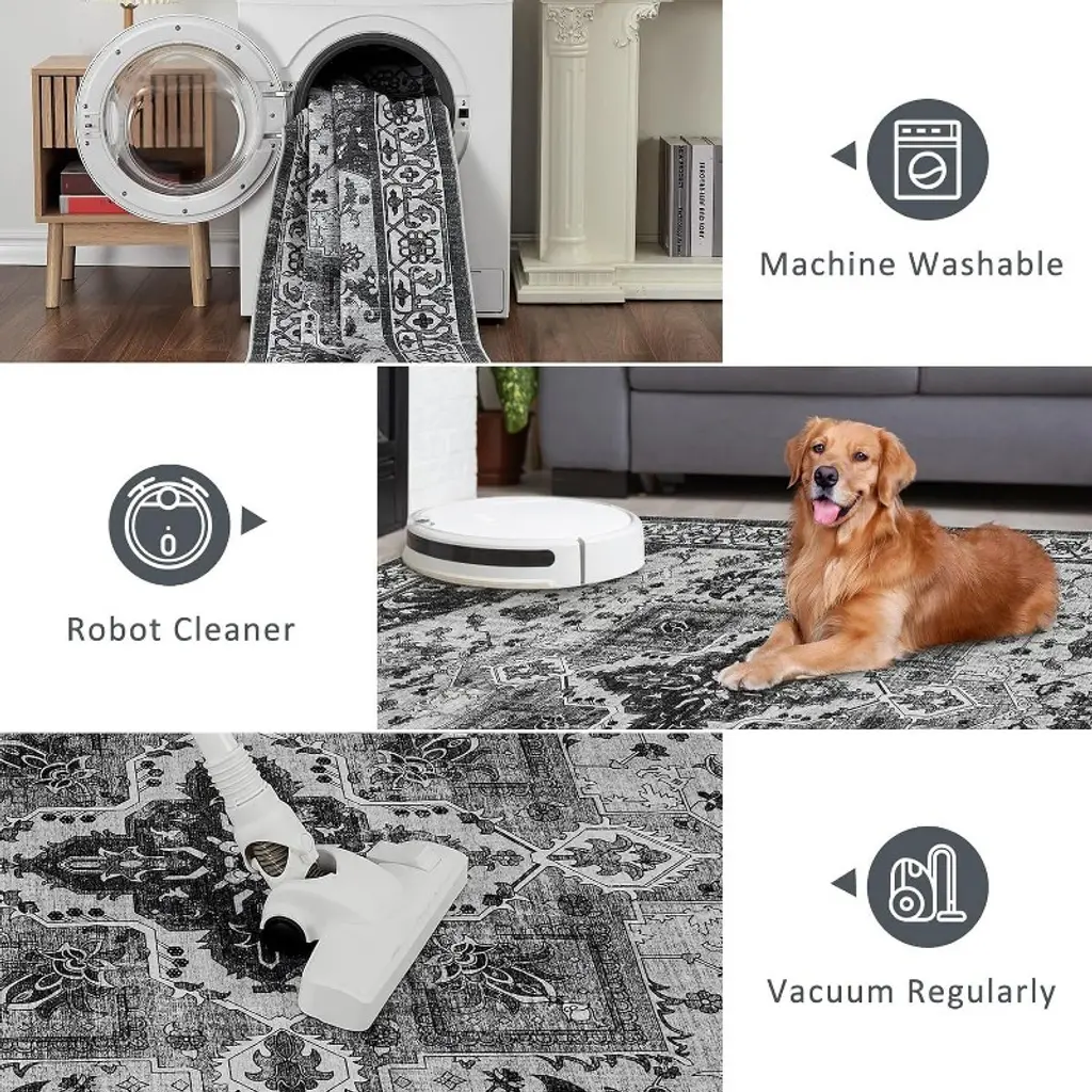 Area Rugs Machine Washable Runner Rugs for Living Room Bedroom Hallway, Non Slip Indoor Soft Accent Distressed Boho Vintage Print Lightweight Thin Low Pile Carpet