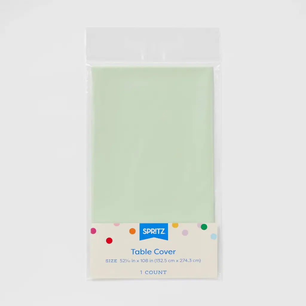 Get your table ready for your next party with this Sage Rectangular Table Cover from Spritz™ This table cover offers you a base to set the table for any party or gatherings while ensuring it stays protected from spills or stains. With a simplistic sage color, this table cover adds a pop of fun to your celebrations. Pair it with suitable dinnerware, tableware and napkins to create an elegant display.Spritz™: Pops of joy that make the moment™