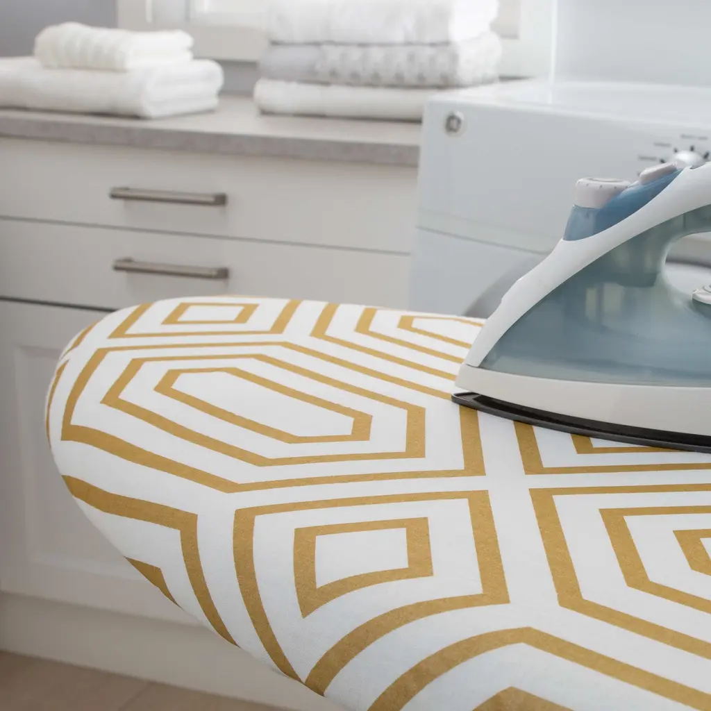 Add fashion and safety to your laundry room with the Simplify Scorch Resistant Ironing Board Cover & Pad. Fitting most standard ironing boards the scorch resistant cover and padding makes this cover long lasting. It also helps your ironing board last longer. The easy fit elastic band and hook and loop fasteners ensure a tight fit and no slipping while ironing. Add some color to your ironing with this cover!