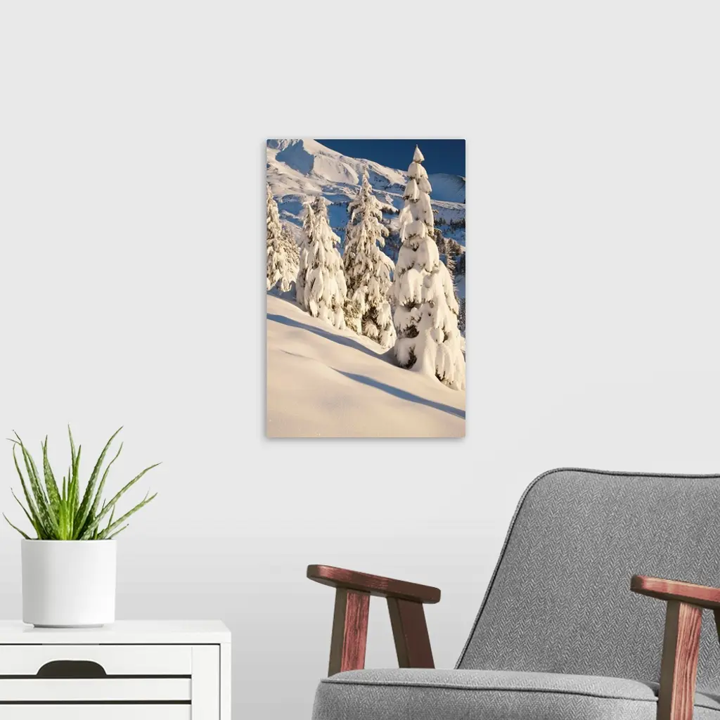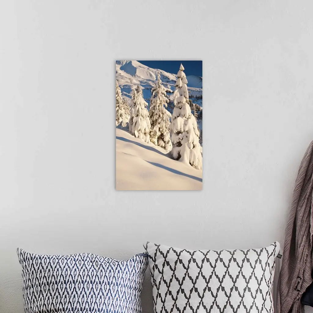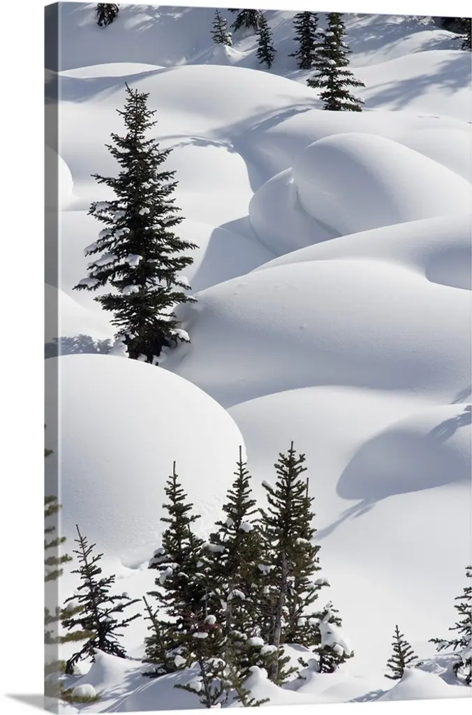 Snow Covering A Mountain And Trees In Winter On Mount Hood In The Oregon Cascades wall art for home and office decor. Discover canvas art prints, photos, mural, big canvas art and framed wall art in GreatBigCanvas.com's varied collections.