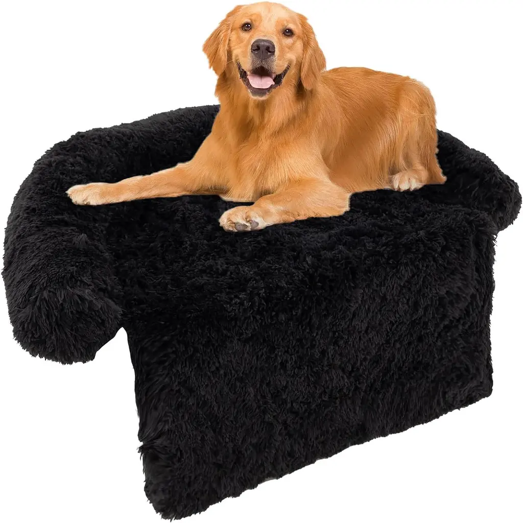 Luxurious Comfort for Your Furry Friend! Our plush dog couch bed comes in 3 sizes (S, M, L) to choose from, offering a cozy retreat for pets up to 110 lbs. Designed to protect furniture and provide versatile functionality, it can be used on beds, sofas, floors, cars, and more. Covered in soft long plush fabric and filled with comfortable cotton, it ensures superior comfort and support. The removable and washable outer cover makes cleaning a breeze. With a non-slip and waterproof bottom, along with a convenient carrying handle, this bed stays securely in place. Treat your pet to the ultimate lounging experience! Features:Specification