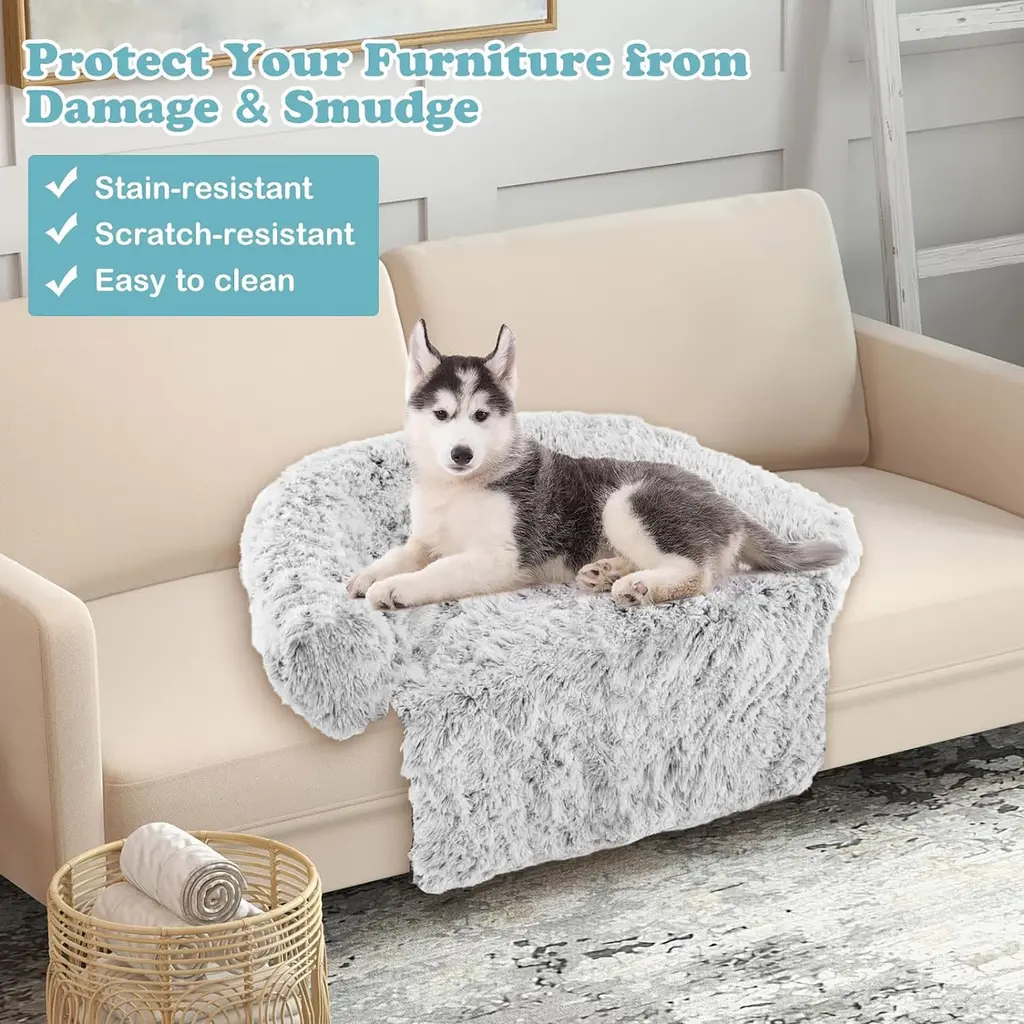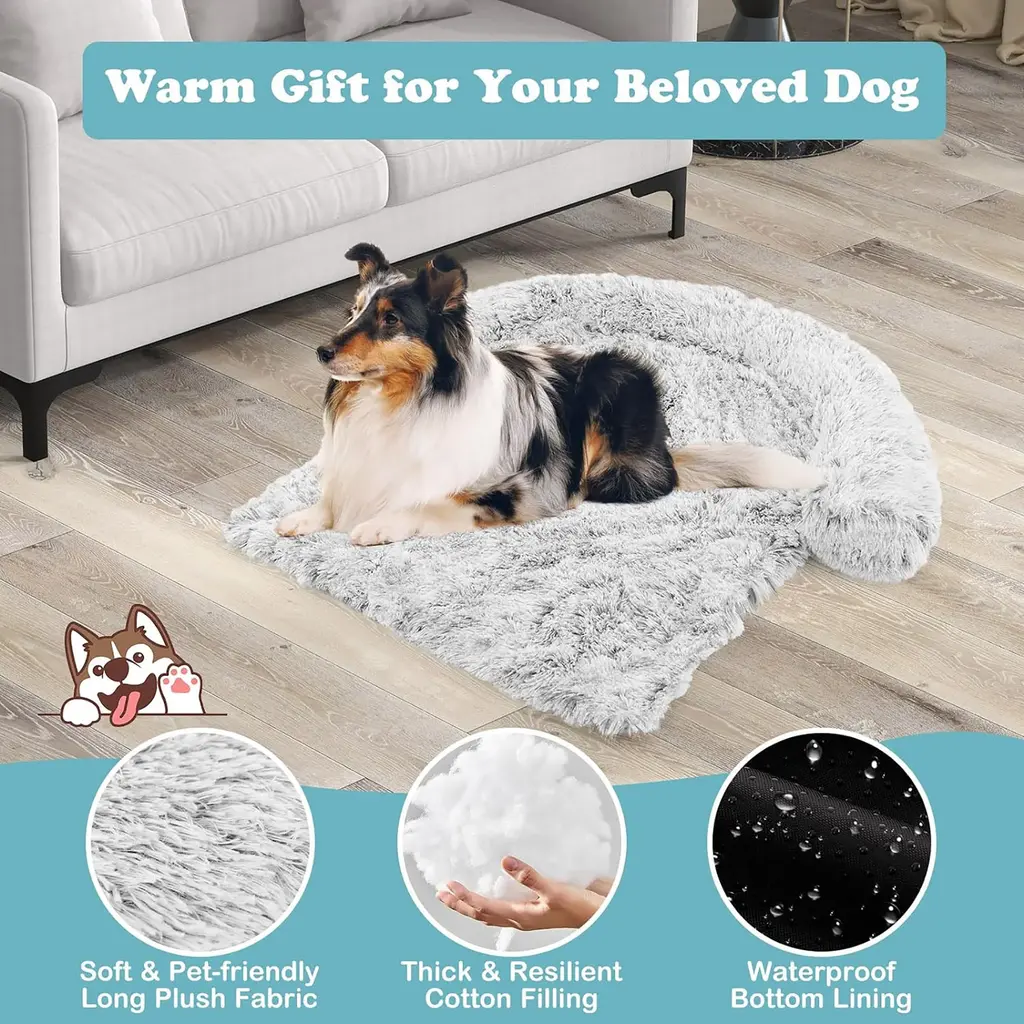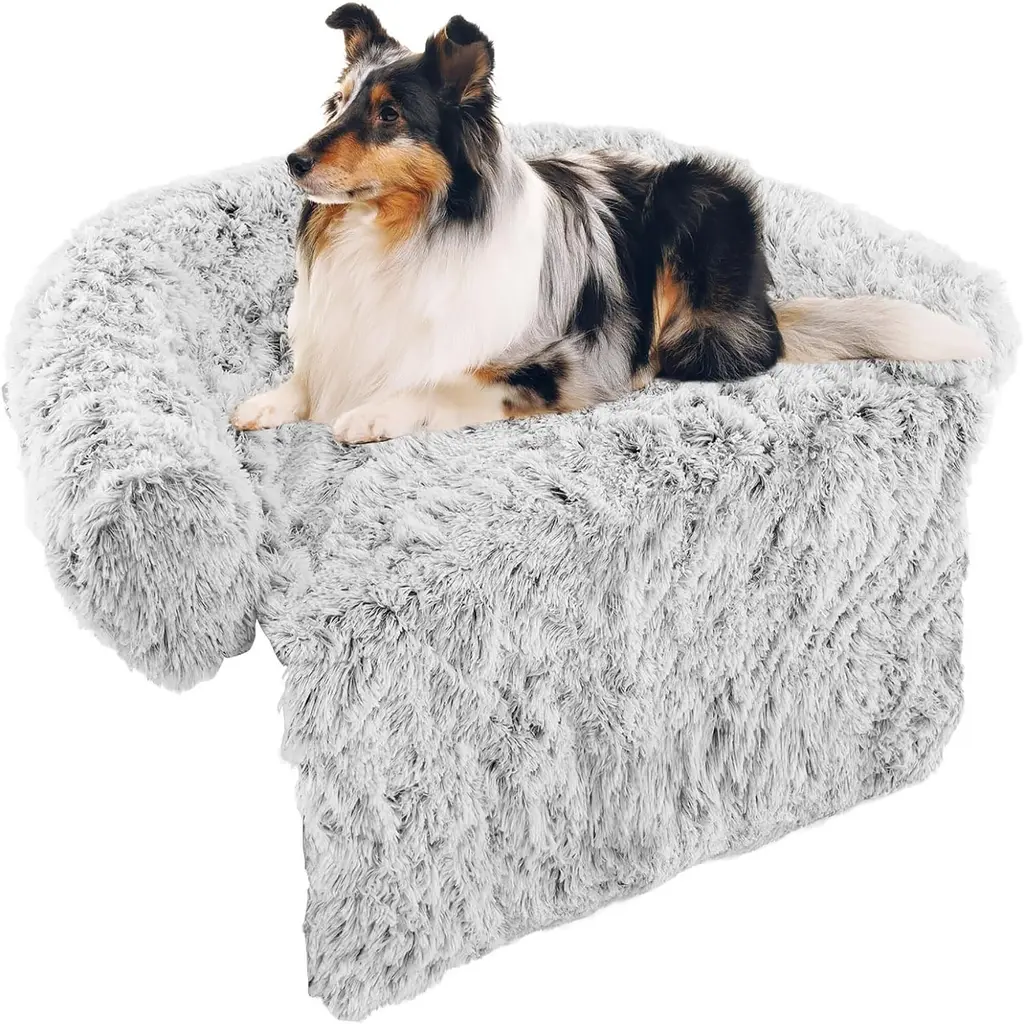 Luxurious Comfort for Your Furry Friend! Our plush dog couch bed comes in 3 sizes (S, M, L) to choose from, offering a cozy retreat for pets up to 110 lbs. Designed to protect furniture and provide versatile functionality, it can be used on beds, sofas, floors, cars, and more. Covered in soft long plush fabric and filled with comfortable cotton, it ensures superior comfort and support. The removable and washable outer cover makes cleaning a breeze. With a non-slip and waterproof bottom, along with a convenient carrying handle, this bed stays securely in place. Treat your pet to the ultimate lounging experience! Features:Specification