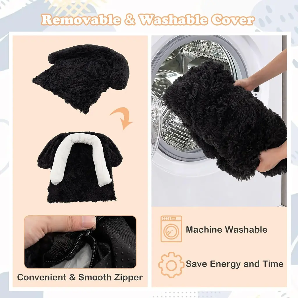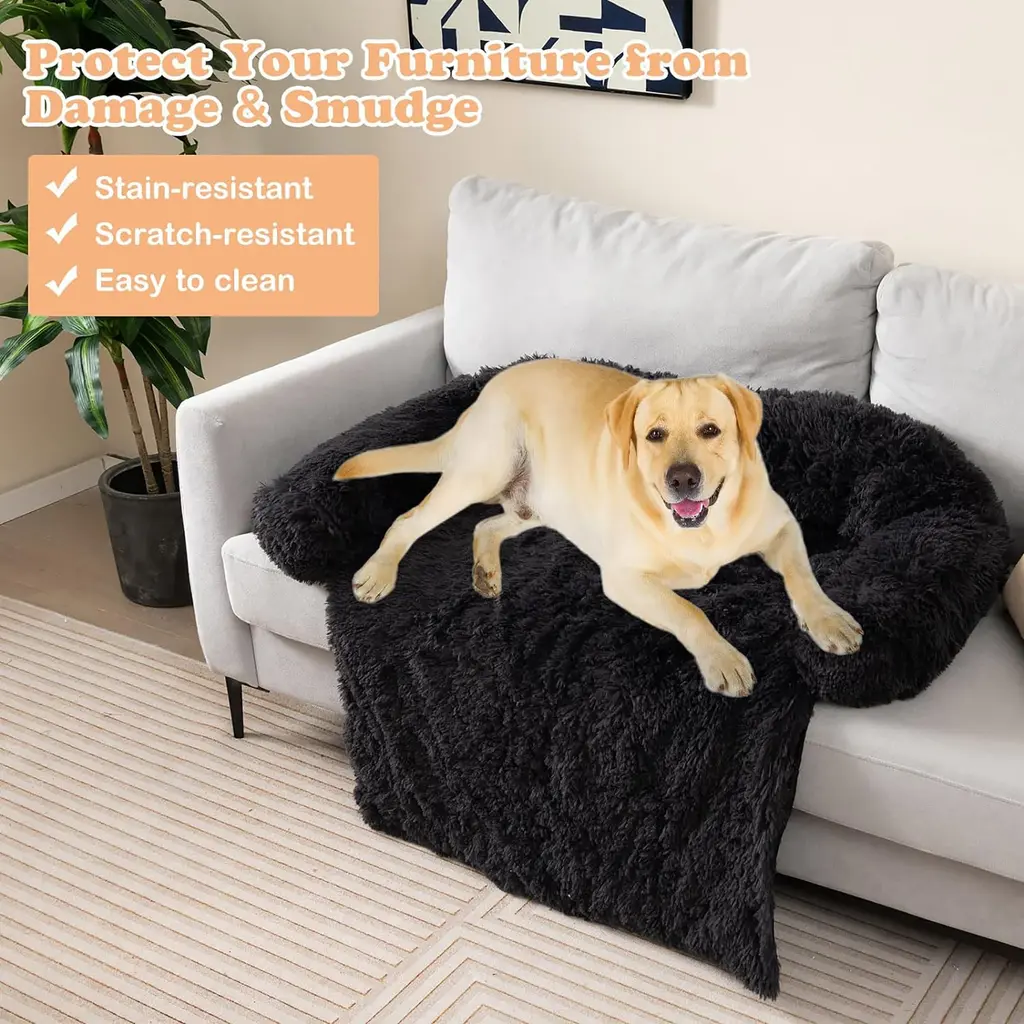 Luxurious Comfort for Your Furry Friend! Our plush dog couch bed comes in 3 sizes (S, M, L) to choose from, offering a cozy retreat for pets up to 110 lbs. Designed to protect furniture and provide versatile functionality, it can be used on beds, sofas, floors, cars, and more. Covered in soft long plush fabric and filled with comfortable cotton, it ensures superior comfort and support. The removable and washable outer cover makes cleaning a breeze. With a non-slip and waterproof bottom, along with a convenient carrying handle, this bed stays securely in place. Treat your pet to the ultimate lounging experience! Features:Specification
