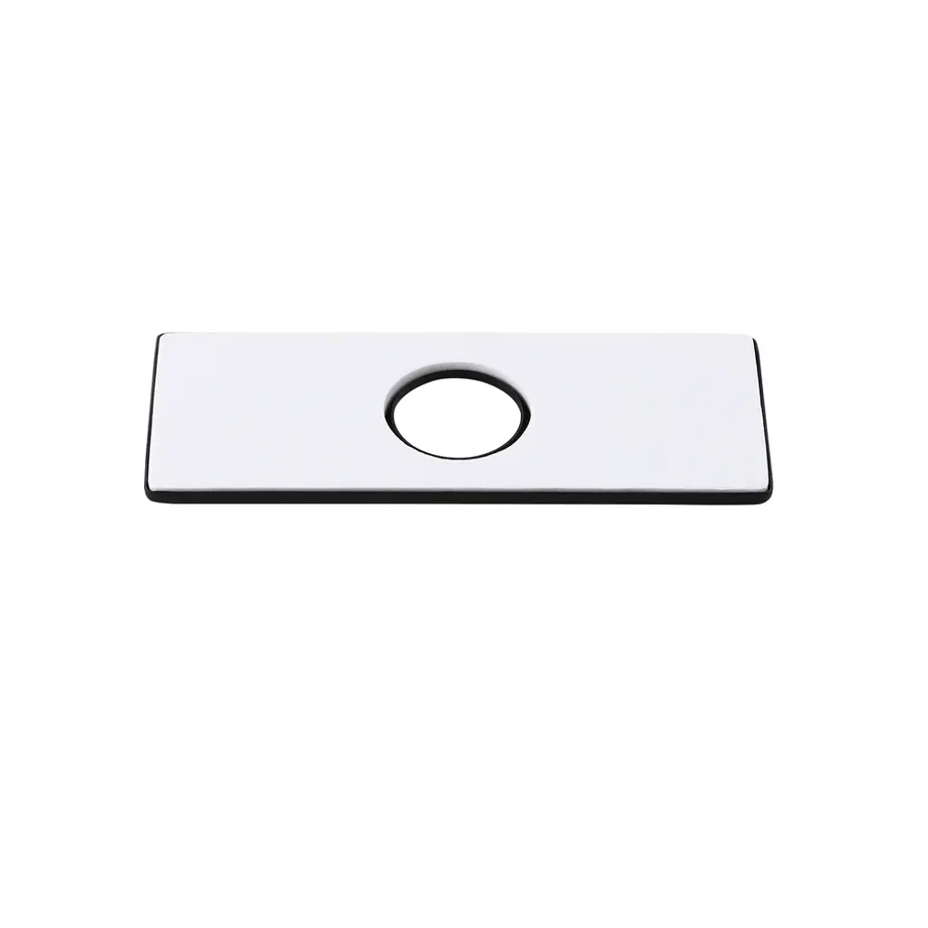 Add the final touches to any bathroom with this square escutcheon cover plate. Designed to be both beautiful and functional, this deck plate covers unused sink holes for a complete look and it is compatible with most single hole faucets. Made from durable stainless steel and plated in a superior finish, it is built for long-lasting use and attractive appearance. Includes a foam washer for a tight seal, it is ready for installation right out of the box. Whether your style is contemporary or transitional, this eacutcheon plate is an ideal addition to match. Length: 6.1" (155mm) Width: 2.36" (60mm) Hole Diameter: 1.26" (32mm)