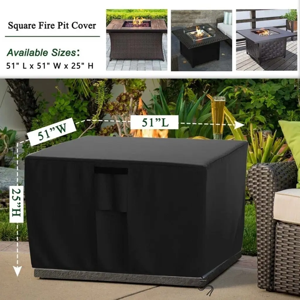 Square Fire Pit Cover Waterproof Patio Fire Table Cover 420d - 51"lx51"wx25"h