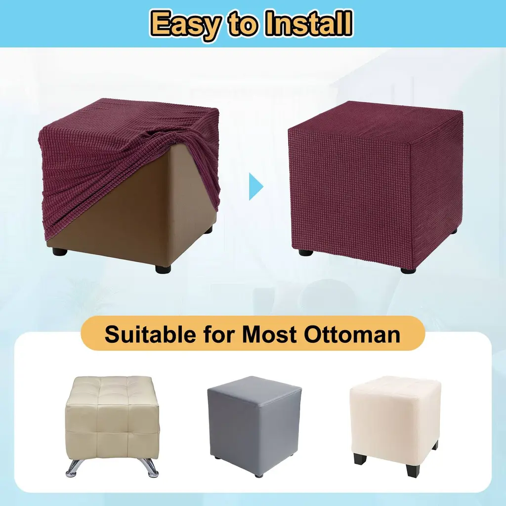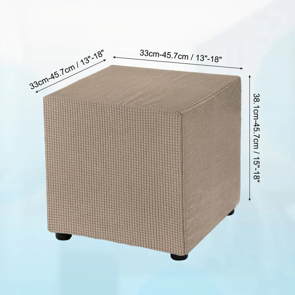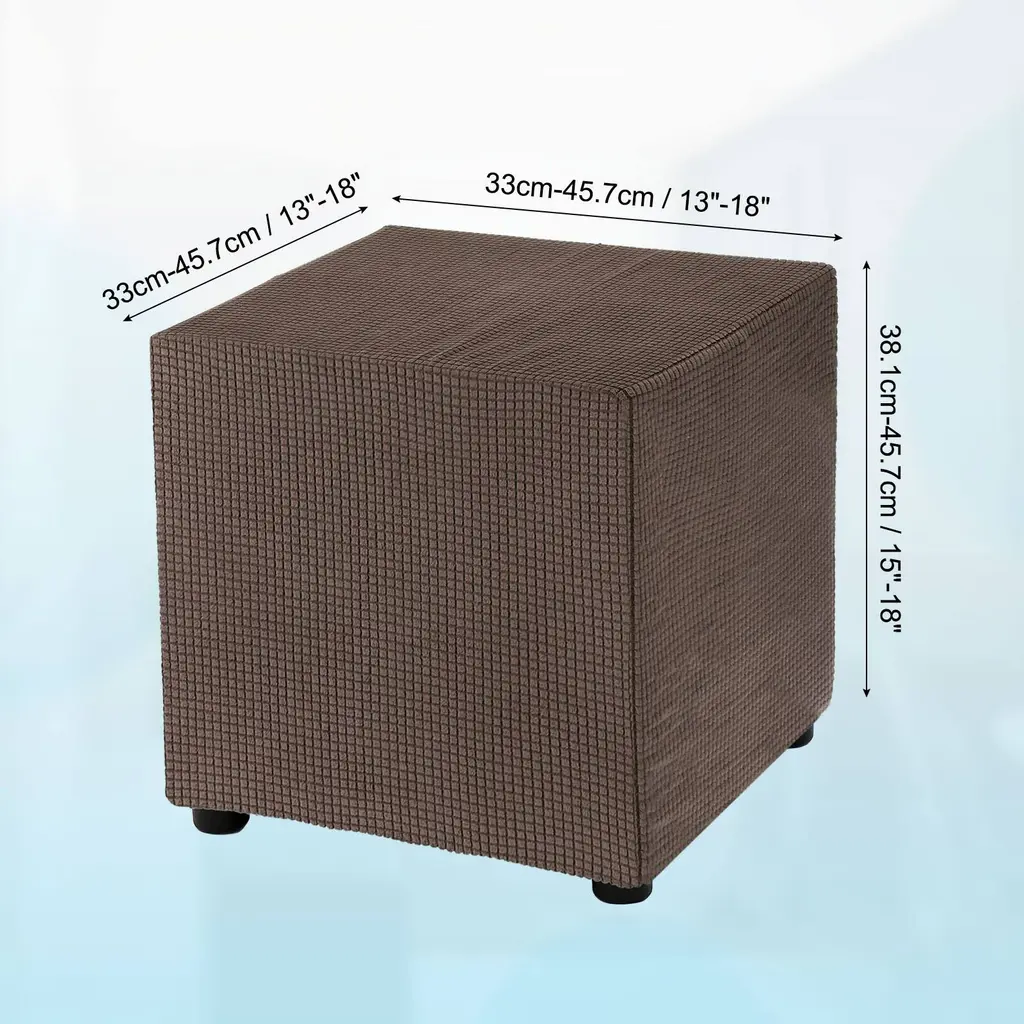 Description:[Material]: The ottoman cover is made of polyester, which is soft and comfortable, has beautiful colors, and is washable and colorfast. The surface adopts a plaid design, which is simple and elegant.[Protection & Decoration]: This ottoman cover has a sophisticated appearance and transforms your old furniture into a new appearance. It provides full coverage to protect your ottoman from spills, dirt, and wear and tear. It is a very practical home decoration.[Easy to Use]: Our ottoman cover is practical and easy to use, just find the 4 corners and put them in the corresponding position, making sure the corners of the ottoman are aligned with the corners of the cover, there is an elastic bottom around the hem to better fix the ottoman cover in place.[Clean & Usage]: Our ottoman cover is wrinkle-free and machine washable for easy cleaning and maintenance. It is very suitable for ottoman in kitchens, bedrooms, dining rooms, restaurants, living rooms, hotels, etc.Specification:Material: PolyesterLength: 33cm / 13inch stretch to 45.7cm / 18inchWidth: 33cm / 13inch stretch to 45.7cm / 18inchHeight: 38.1cm / 15inch stretch to 45.7cm / 18inchPackage Content:1 Pcs x Ottoman Cover