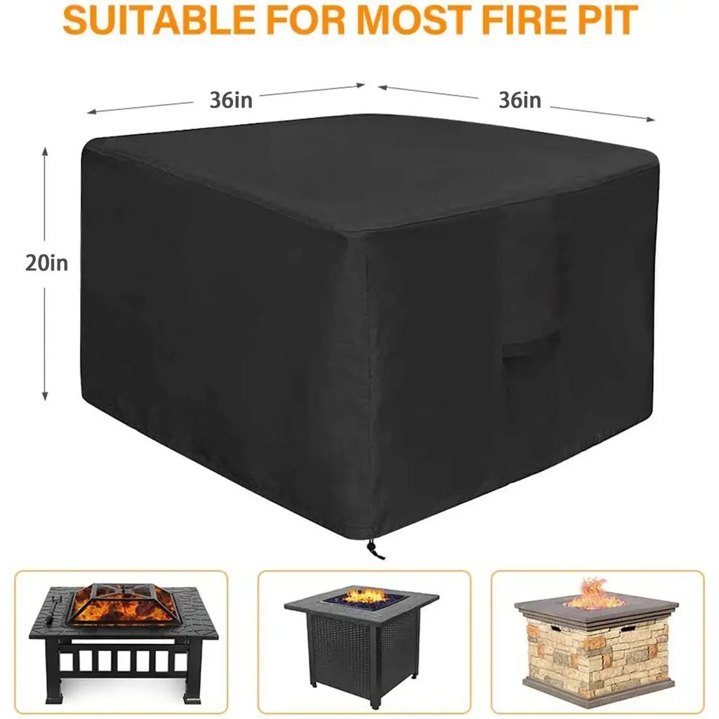 Waterproof - Our fire pit cover is made of 420D high density oxford fabric with an added water-resistant PVC coating, full coverage to protect fire pit table from rain, UV rays, snow, storm and other external elements. Extending the lifetime of fire pit table. Rip Resistant & Anti-UV - Our fire pit cover uses upgraded sewing thread technology and double bound edges provide full angle protection for the fire pit cover from cracking. UV resistant design protect your fire pit from aging and fading under the sunlight. Easy to Clean and Store - When the cover gets dirty, you can rinse it directly with a tap or wipes with a damp cloth, and then hang it to dry in the sun. Our fire pit cover also comes with a storage bag. With handles on each side you can easily fold it back into this bag when not in use and it could save storage space for you. Air Vent and Drawstring Straps - Air Vent reduces inside condensation and offer air ventilation for the fire pit, keep the fire pit completely dry, preventing moisture and rust. Drawstring straps at the hem keep the cover stay in place and fit snugly, especially during high winds and severe weather. Sizes & Universal Fit - Our fire pit cover are suitable for 40"L x 40"W x 24"H/ 50"L x 50"W x 24"H/ 36"L x 36"W x 20"H/ 44"L x 44"W x 24"H outdoor square fire pit/table/bowl and other rectangle/square furniture of the same size. it is very widely used in daily life. Please measure the size before purchasing, and then choose the best size.