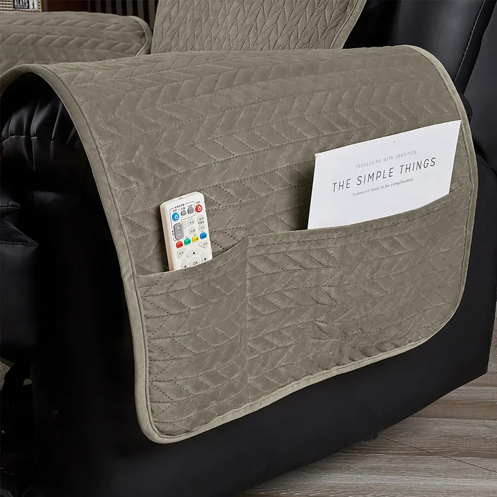 Stonecrest Non Slip Recliner Chair Cover, Velvet Recliner Slipcover - Recliner 23" Regular - Taupe