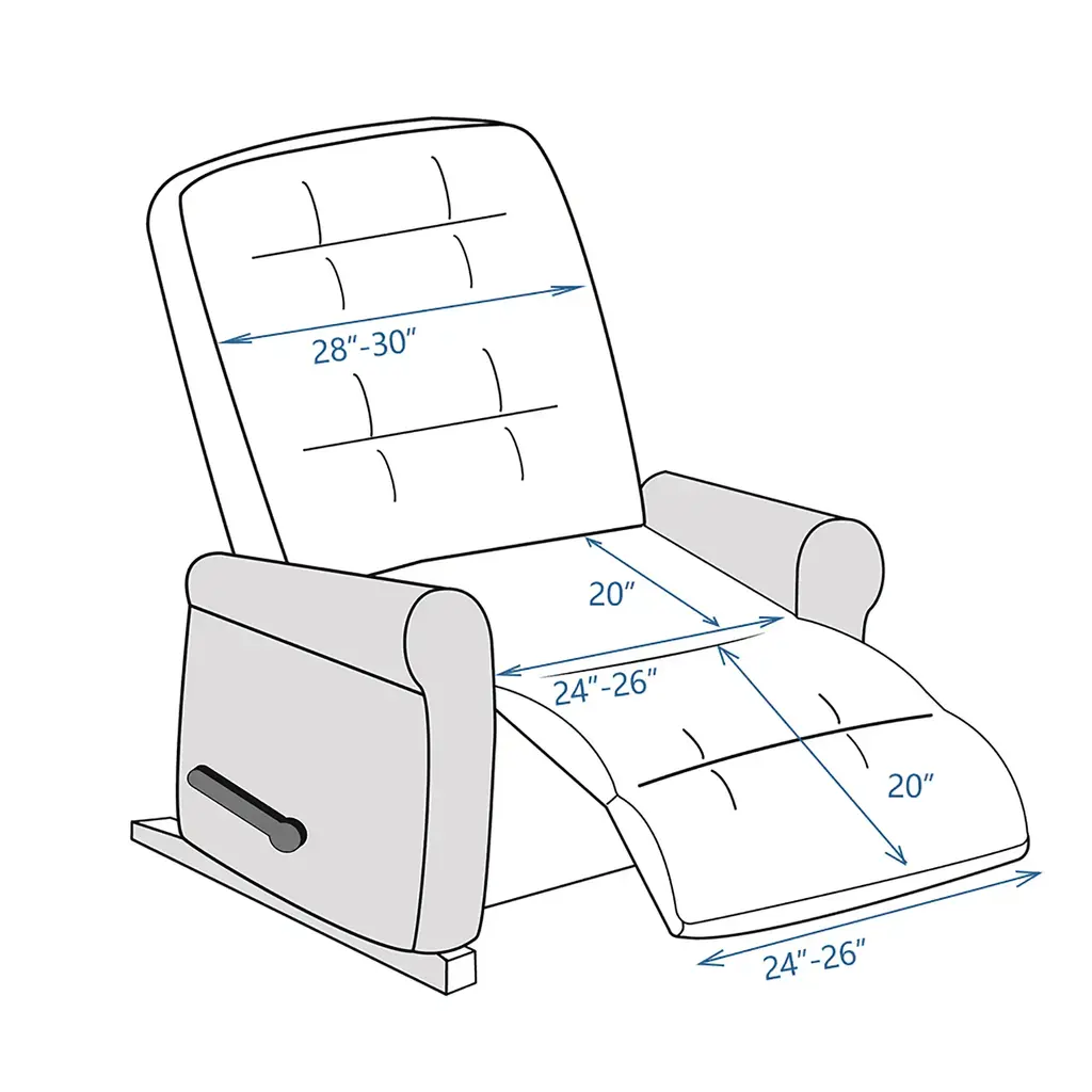 Special Design: Our waterproof recliner chair cover comes with 2 pockets Waterproof: Our recliner cover is 100% waterproof and protects your furniture from pets fur, stains, scratches. You can rest assured to let your pet and children play happily on the recliner and are not afraid of your recliner will be dirty or broken any more. Premium Material: Our this recliner slipcover is made of MICRO Faux Suede and offers you a total softness and comfortable feeling, and by using the NEVERWET treatment on the suede face and TPU laminated on the back, 100% waterproof protector. Size Guide: Our recliner chair cover has THREE sizes- 23” Recliner, 25” Recliner and 34 RDS Recliner. Please see our Size Guide before your puchase Excellent Service: We are confident in our product and value customers' satisfaction. If you are not satisfied with our product, please contact us and we will give you a satisfactory solution.