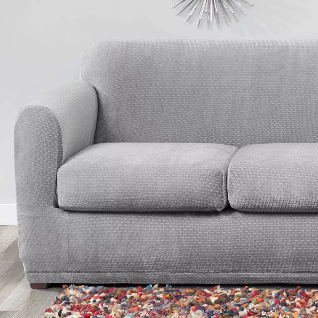 Refresh your sofa’s style with a modern, on-trend look – while helping protect your furniture from pets, kids, and daily wear and tear. Stretchy fabric with a contemporary, block tile design helps make a statement in almost any room – whether you’re decorating a living room, dorm room or guest room. Designed to create a sleek, form fit, the zippered, separate seat cushions require no re-tucking. Machine washable, for easy care. Designed in the United States by SureFit, the leader in furniture protection since 1914.