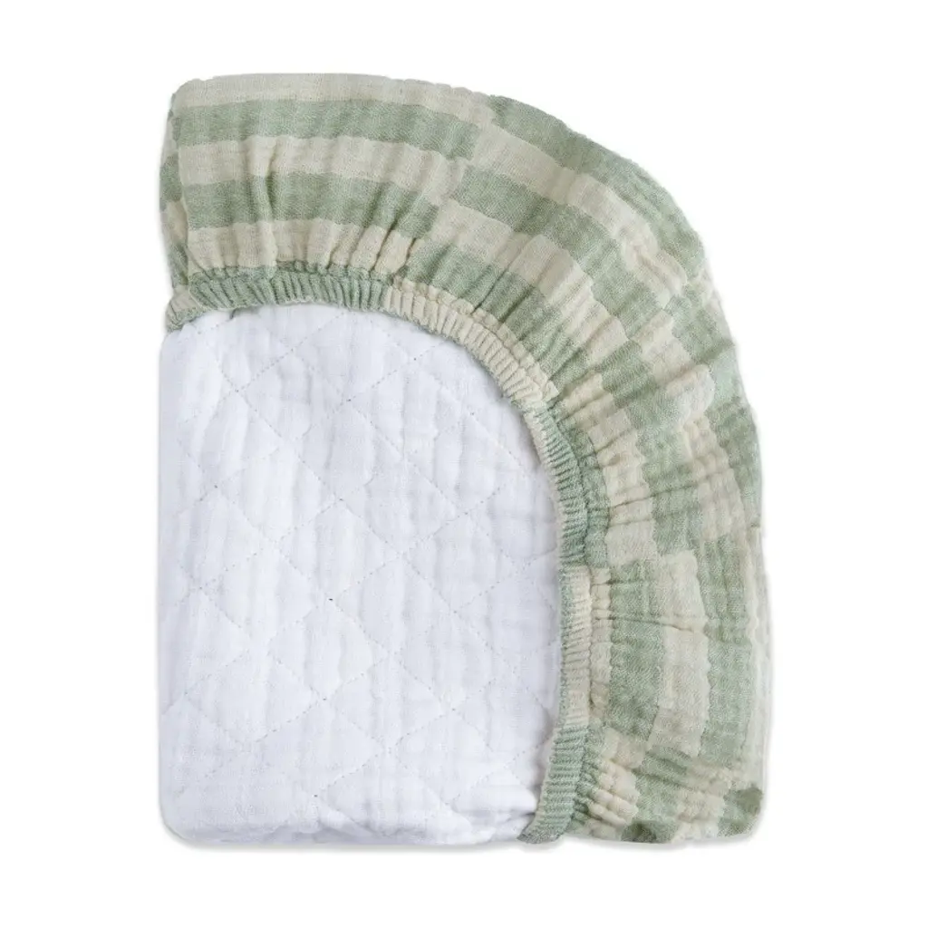 Our changing pad covers are consciously crafted from breathable and soft GOTS-certified organic muslin cotton for a cozy changing spot.
