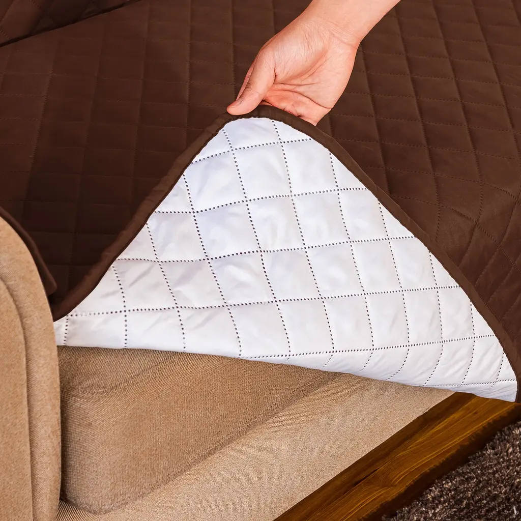 Perfect for family rooms and casual decorative styles, our luxuriously plush quilted velvet deluxe comfort furniture cover is a stylish solution that protects your furniture from pet hair, stains and dirt. The 9 decor-friendly colors of this Subrtex furniture protectors give you several chances to fit your different types of chairs and sofas and blend in well with your room setting.Key Features:[Backdrop to Prevent Slippage Design] Our protector comes with exclusively designed adjustable straps (to fix your protector in place) engineered to be strong and effective for furniture cover.[Soft and Durable Fabric] Filled with high-loft polyester batting for ultimate comfort. 100% Polypropylene, soft to touch, Skin-friendly, breathable, durable and wear-resistant.[Easy Care] Machine washable and wash in cold water. No bleach. Different colors should be washed separately.Applicable size: (approx.)Please measure your sofa before choosing our sofa slipcovers, including arms, over the back, front, and strap length. We offer our sofa sized covers in the most sizes for the perfect fit. Choose from the CHAIR (23" seat width), CHAIR AND A HALF (48" seat width), LOVESEAT(54" seat width), SMALL SOFA(62" seat width), SOFA(70" seat width), or OVERSIZE SOFA(78" seat width).Notice:Because of the different light and different computer screen resolution, the color showed on the screen may be slightly different from the actual one.