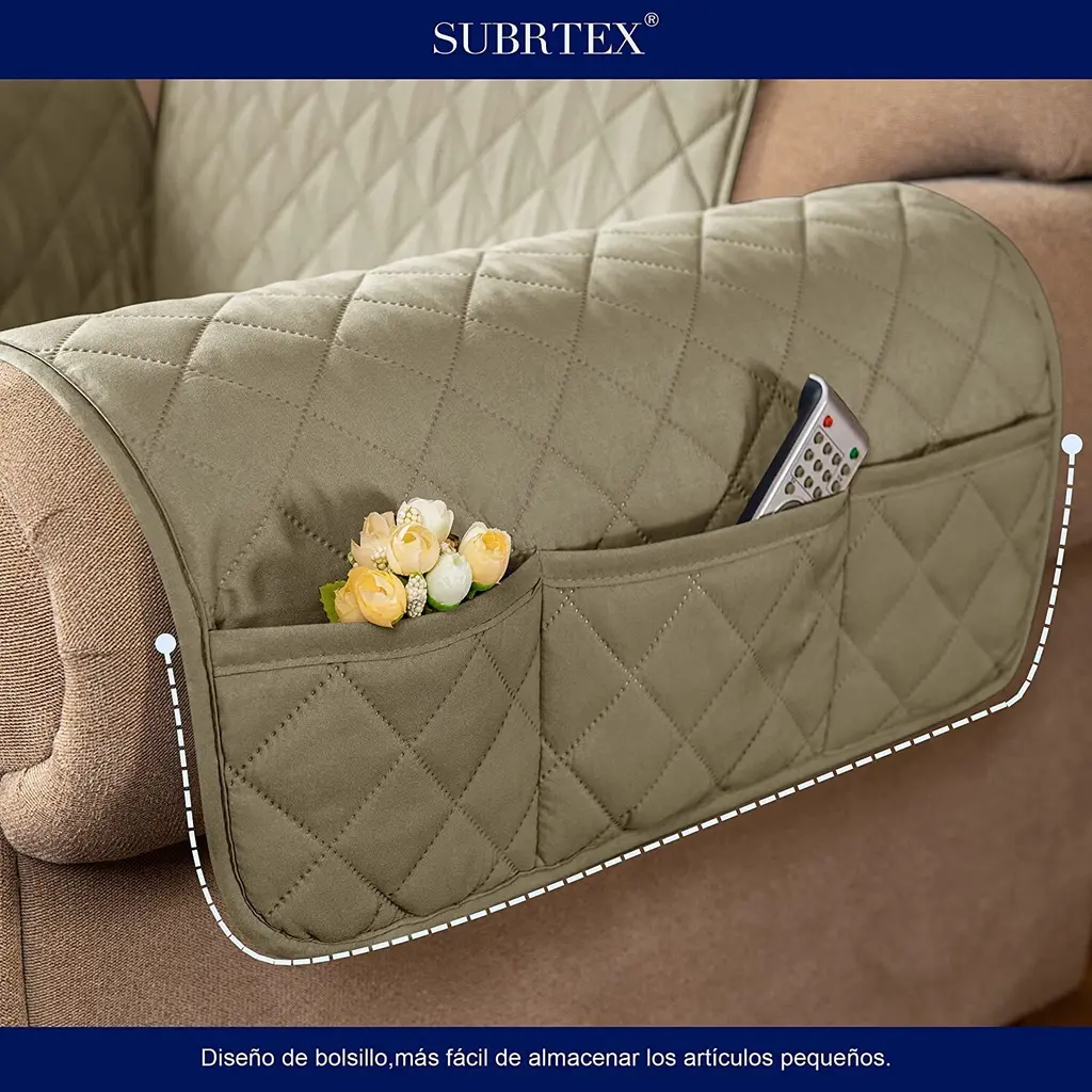 Perfect for family rooms and casual decorative styles, our luxuriously plush quilted velvet deluxe comfort furniture cover is a stylish solution that protects your furniture from pet hair, stains and dirt. The 9 decor-friendly colors of this Subrtex furniture protectors give you several chances to fit your different types of chairs and sofas and blend in well with your room setting.Key Features:[Backdrop to Prevent Slippage Design] Our protector comes with exclusively designed adjustable straps (to fix your protector in place) engineered to be strong and effective for furniture cover.[Soft and Durable Fabric] Filled with high-loft polyester batting for ultimate comfort. 100% Polypropylene, soft to touch, Skin-friendly, breathable, durable and wear-resistant.[Easy Care] Machine washable and wash in cold water. No bleach. Different colors should be washed separately.Applicable size: (approx.)Please measure your sofa before choosing our sofa slipcovers, including arms, over the back, front, and strap length. We offer our sofa sized covers in the most sizes for the perfect fit. Choose from the CHAIR (23" seat width), CHAIR AND A HALF (48" seat width), LOVESEAT(54" seat width), SMALL SOFA(62" seat width), SOFA(70" seat width), or OVERSIZE SOFA(78" seat width).Notice:Because of the different light and different computer screen resolution, the color showed on the screen may be slightly different from the actual one.