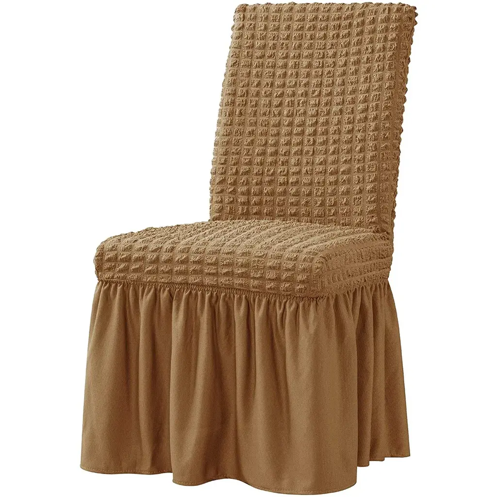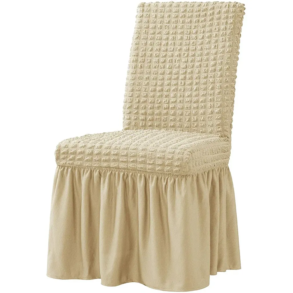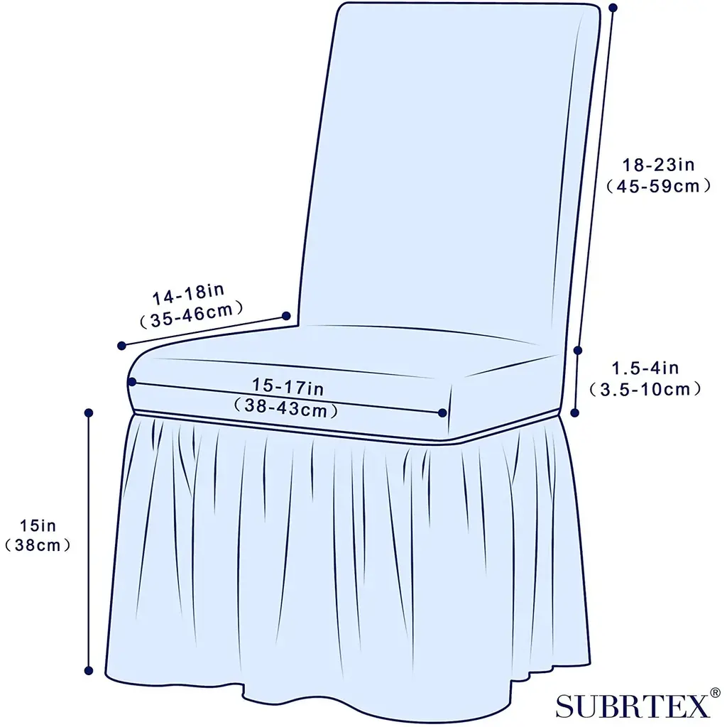 Protect your dining chairs from daily wear and tear while refreshing their appearance with Subrtex Set-of-2 Stretch Dining Chair Cover Ruffle Skirt Slipcovers. Made of soft and stretchable 85% polyester and 15% spandex fabric, these slipcovers are comfortable to the touch and provide a snug fit on most dining chairs. The lotus leaf skirt design adds a touch of elegance to your dining room decor, while the 10 available colors allow you to choose the perfect match for your home kitchen, hotel, or restaurant. Easy to install and care for, these slipcovers are perfect for special events or everyday use.Features:Product Specification:
