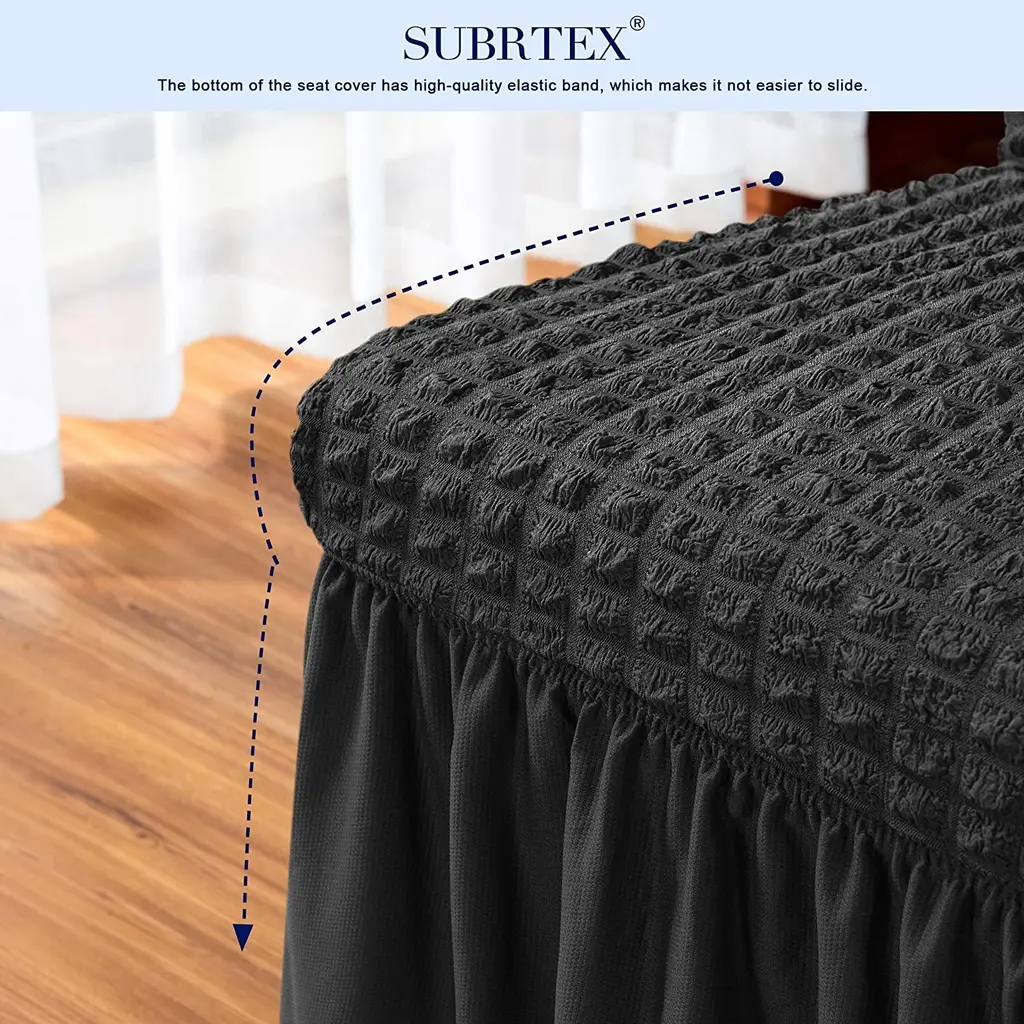 Subrtex Set-Of-2 Stretch Dining Chair Cover Ruffle Skirt Slipcovers - Grey