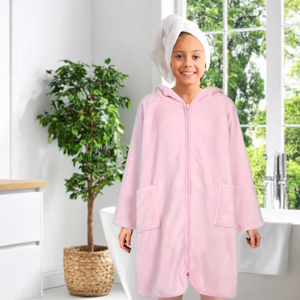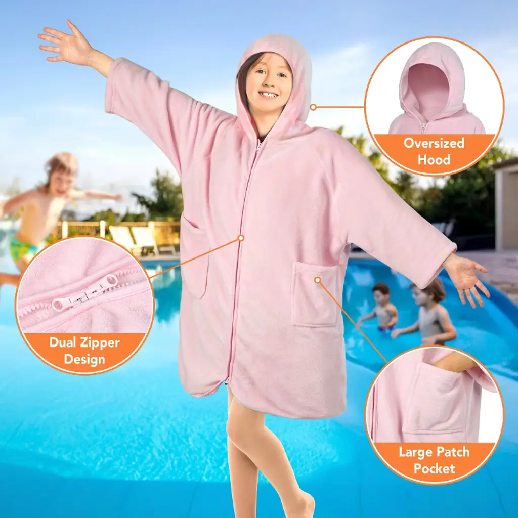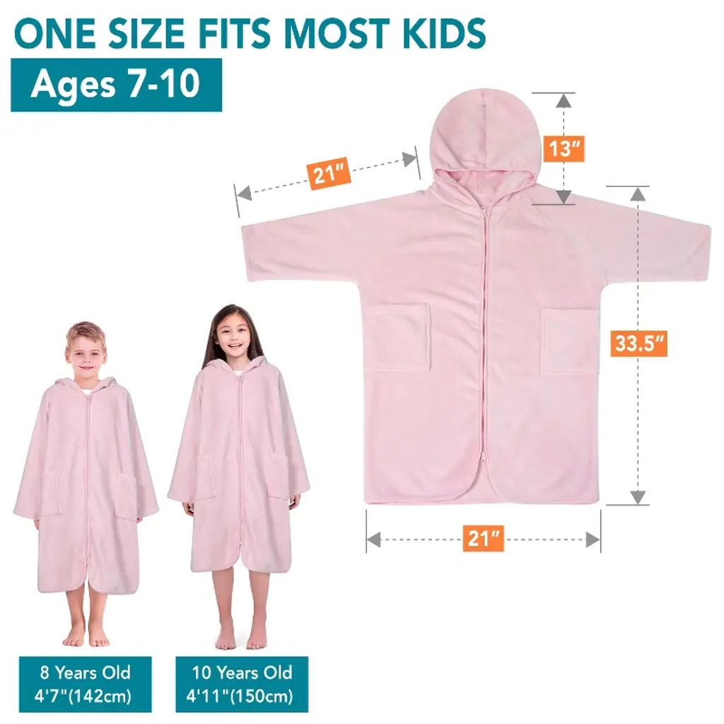 Sun Cube Fleece Zipper Hooded Towel Robe For Kids, Zip Up Swim Beach Cover Up, Bath Surf Changing Girls Boys 7-10 Years (Light Pink, Big Kid (7-10))