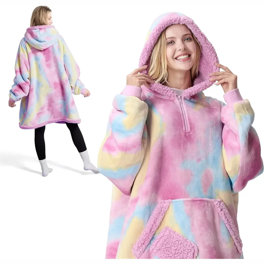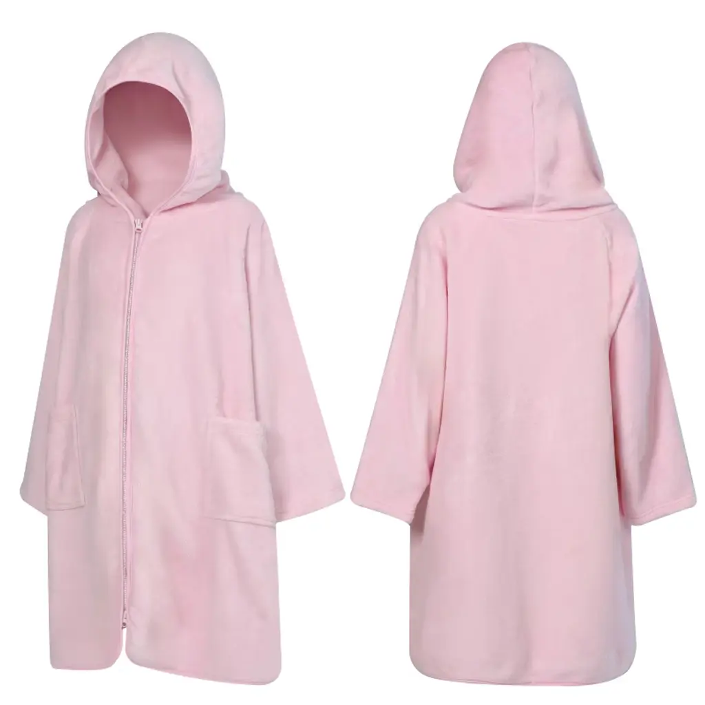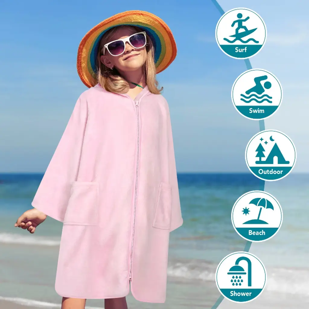 Sun Cube Fleece Zipper Hooded Towel Robe For Kids, Zip Up Swim Beach Cover Up, Bath Surf Changing Girls Boys 7-10 Years (Light Pink, Big Kid (7-10))