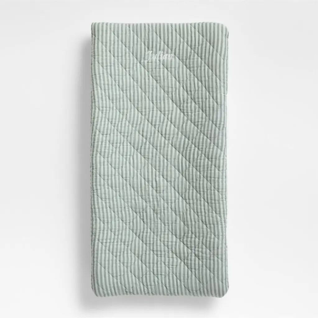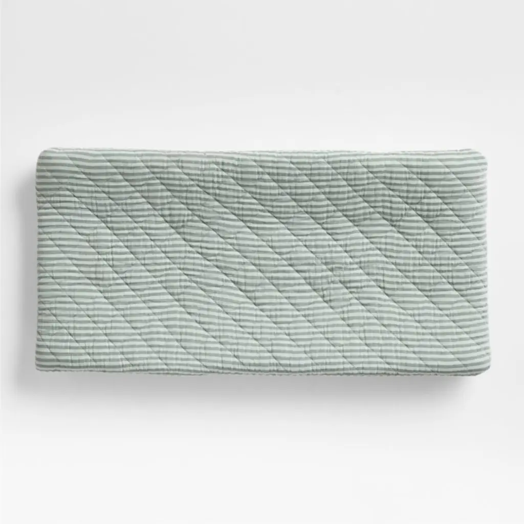 Supersoft Striped Pine Green Organic Cotton Gauze Baby Changing Pad Cover
