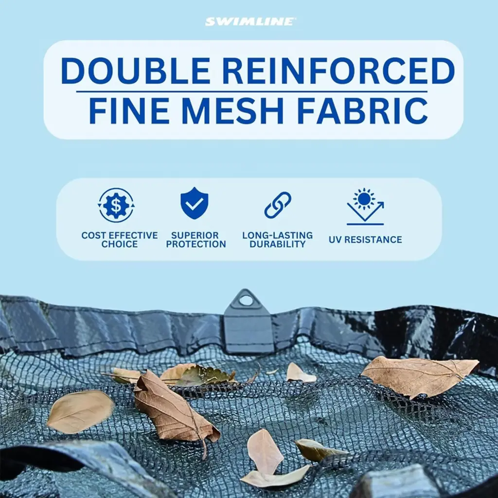 Introducing the SWIMLINE HYDROTOOLS Leaf Net Series: The Ultimate Pool Defender. If there’s one thing seasoned pool owners know, it's that the battle against leaves, sticks, etc is relentless, especially during the fall and winter months. Designed for above-ground and inground swimming pools, our wide range of leaf net offerings make pool maintenance not just easy, but almost effortless. Imagine a scenario where you’re preparing for that first dive of the spring season, and instead of wrestling with leaves, you simply deal with your leaf net. Strategically place it over your pool cover, and when the trees start shedding, you’re already a step ahead in the cleanup game. In the world of pool accessories, durability is king. Our leaf nets are meticulously crafted from double-reinforced mesh fabric. Iit’s treated to combat the effects of UV rays, and deterioration. Through rigorous processes of individual weaving, sealing, and stitching, we ensure that our nets stand the test of time, season after season. We understand that as pool owners, you value products that respect your time. That’s why our nets feature scattered attachment grommets, ensuring you can set them up in no time. And their lightweight design? It’s not just for easy handling; it’s designed to play well with water tubes and other weight accessories. For those with an eye for detail and a preference for a snug fit, especially if your pool boasts large top rails, consider opting for a size up. It’s all about ensuring that secure embrace around your pool, without any strain or overstress. Rooted in our commitment to excellence, and based out of our New York headquarters, the SWIMLINE promise is unwavering. We stand by the quality and durability of our products, reflected in our varied warranty offers. In the realm of pool care, knowledge is power. And with the SWIMLINE HYDROTOOLS Leaf Net series, you're not just purchasing a product; you're investing in peace of mind.
