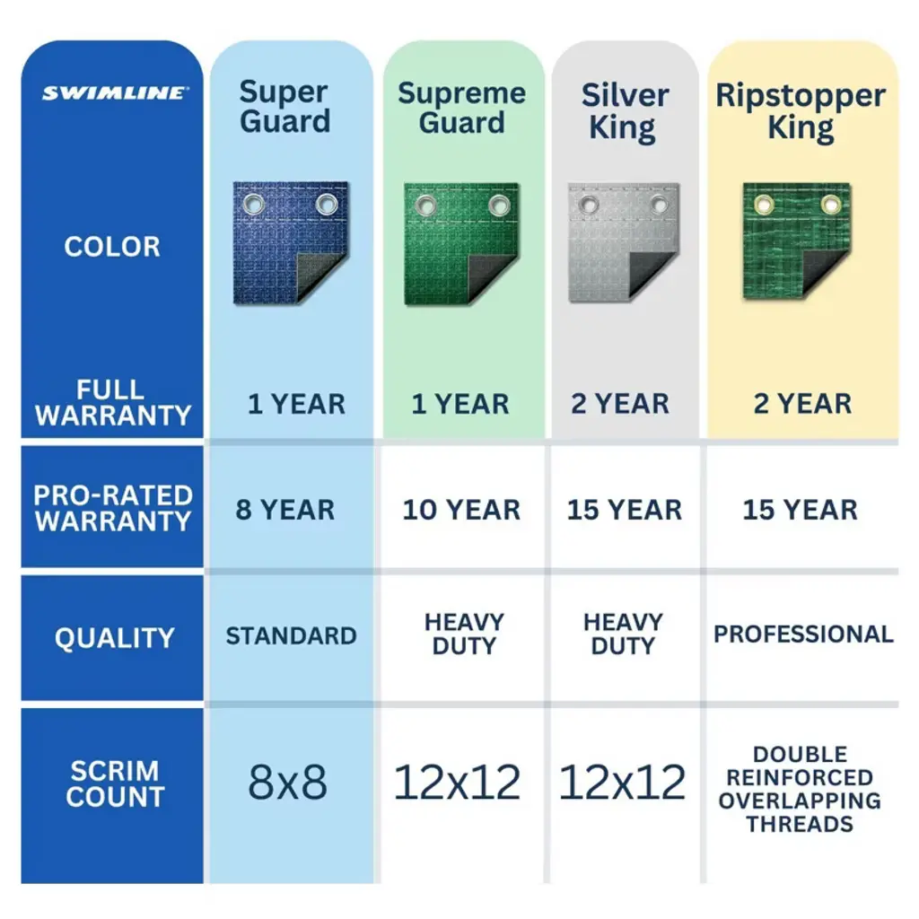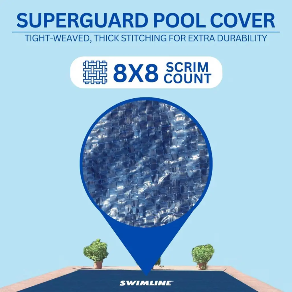Introducing the SWIMLINE HYDROTOOLS Heavy Duty Pool Covers, your ultimate solution for preserving the quality and longevity of your above-ground swimming pool through the winter season. Designed with the highest standards, our pool covers effectively keep out snow, ice, and debris, ensuring your pool remains in pristine condition, ready for the next swim season. Every Hydrotools cover is engineered from our unique woven fabric material. This features a solid tight weave that guarantees no water or debris will pass through, ensuring optimum protection during winter's harshest months. To combat environmental factors, the covers are UV and chemical resistant, adding to their durability and lifespan. Installation is as easy as can be. Each cover comes equipped with perimeter attachment grommets, and a lightweight yet robust design. This means you have everything you need for a hassle-free installation right out of the box. Once installed, the cover should naturally float loosely on the water, fitting securely around your pool without any overstress. Moreover, our pool covers are not standalone solutions but part of a wider protective system within the Hydrotools by Swimline expansive assortment of pool accessories. They pair seamlessly with our extensive range of winterizing accessories such as ice equalizer air pillows, water tubes, and wall bags. With the integrated perimeter grommets, you can use these accessories for additional support and peace of mind. At Swimline, we take pride in the quality and variety of our cover options, designed to fit all sizes and strengths of pools. Our dedication to excellence is rooted in our USA headquarters in New York, where each product is thoughtfully designed to meet your needs. Rest assured, we stand by our products, offering a one-year warranty against any manufacturing defects. This is our Swimline promise to you.