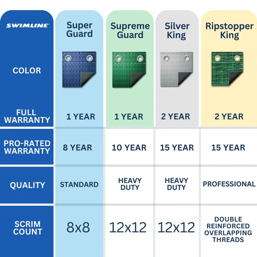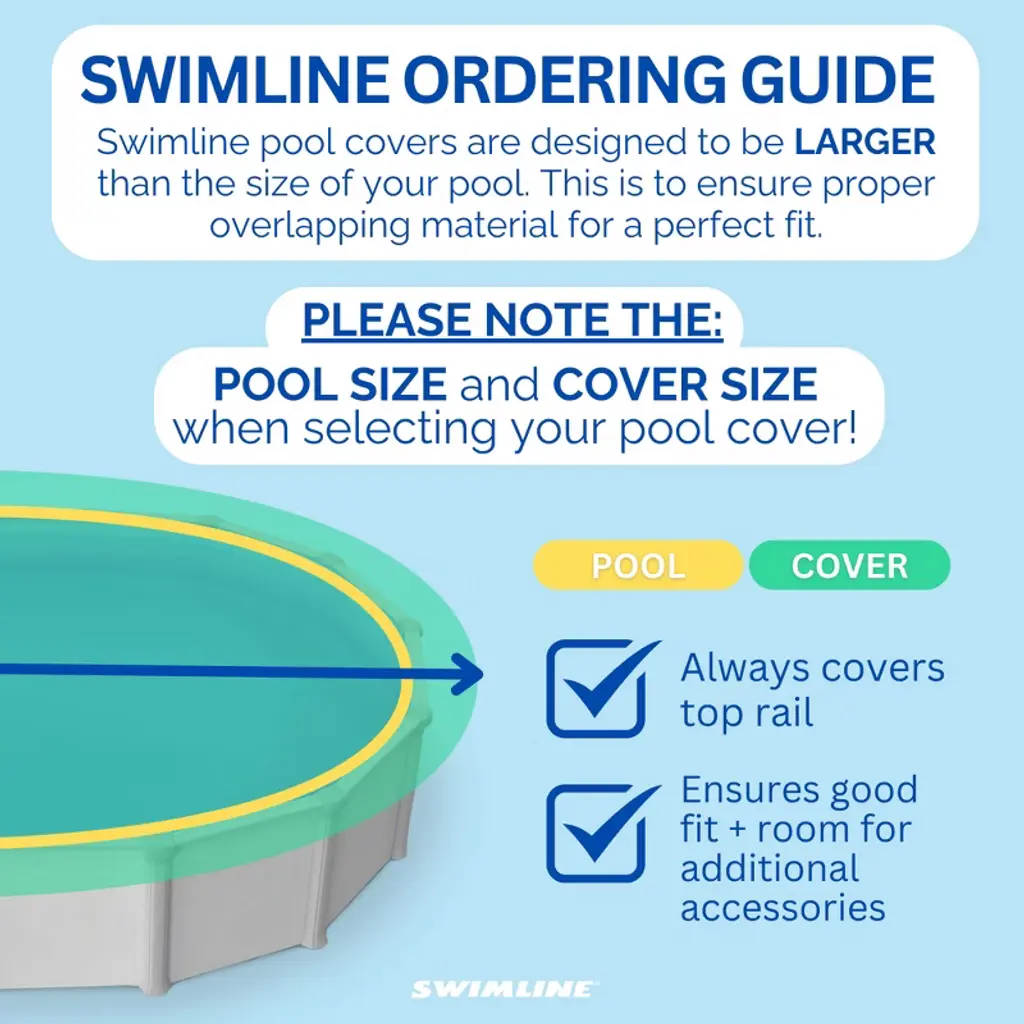 Introducing the SWIMLINE HYDROTOOLS Heavy Duty Pool Covers, your ultimate solution for preserving the quality and longevity of your above-ground swimming pool through the winter season. Designed with the highest standards, our pool covers effectively keep out snow, ice, and debris, ensuring your pool remains in pristine condition, ready for the next swim season. Every Hydrotools cover is engineered from our unique woven fabric material. This features a solid tight weave that guarantees no water or debris will pass through, ensuring optimum protection during winter's harshest months. To combat environmental factors, the covers are UV and chemical resistant, adding to their durability and lifespan. Installation is as easy as can be. Each cover comes equipped with perimeter attachment grommets, and a lightweight yet robust design. This means you have everything you need for a hassle-free installation right out of the box. Once installed, the cover should naturally float loosely on the water, fitting securely around your pool without any overstress. Moreover, our pool covers are not standalone solutions but part of a wider protective system within the Hydrotools by Swimline expansive assortment of pool accessories. They pair seamlessly with our extensive range of winterizing accessories such as ice equalizer air pillows, water tubes, and wall bags. With the integrated perimeter grommets, you can use these accessories for additional support and peace of mind. At Swimline, we take pride in the quality and variety of our cover options, designed to fit all sizes and strengths of pools. Our dedication to excellence is rooted in our USA headquarters in New York, where each product is thoughtfully designed to meet your needs. Rest assured, we stand by our products, offering a one-year warranty against any manufacturing defects. This is our Swimline promise to you.