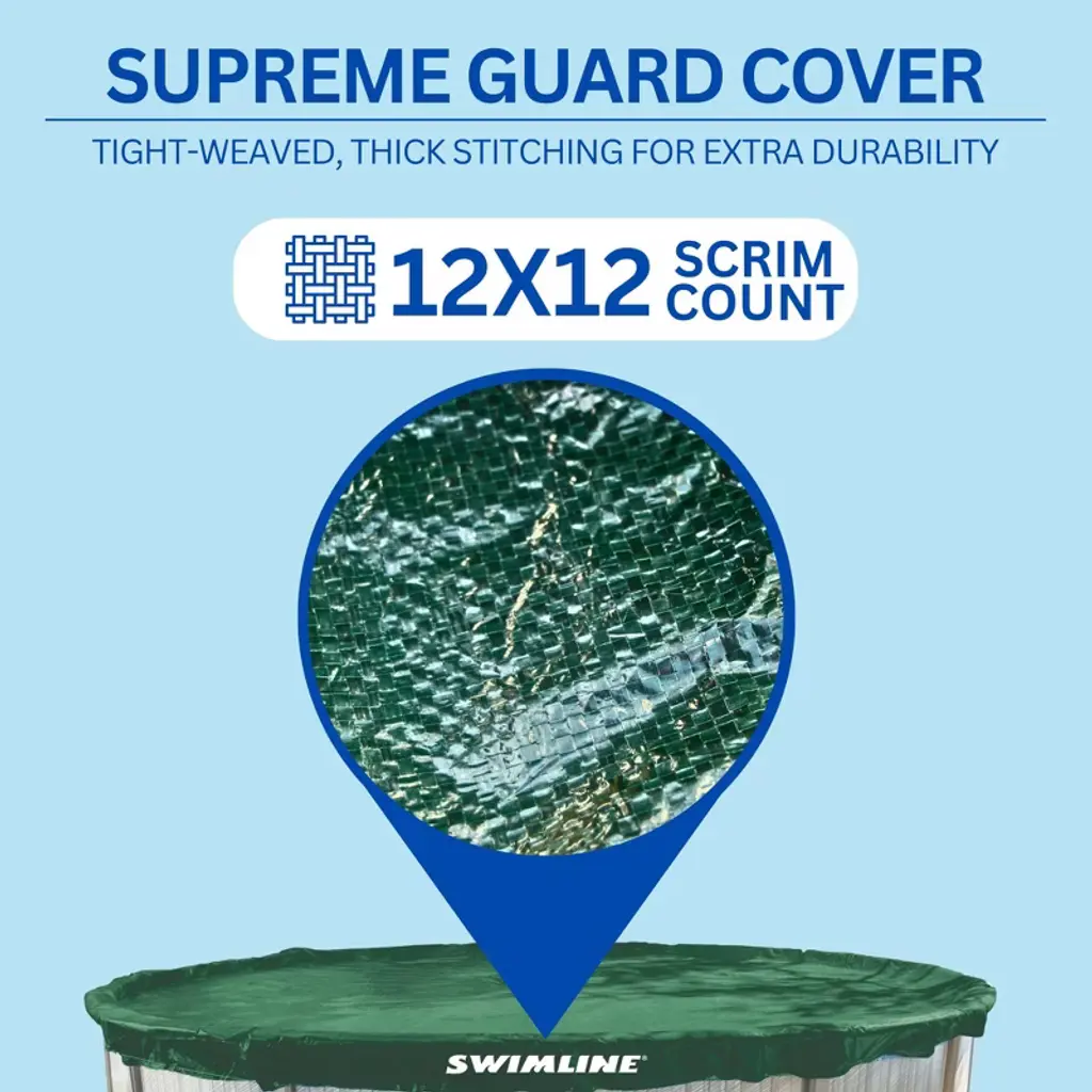 Swimline Hydrotools Supreme Guard Heavy Duty Winter Pool Cover For 24 Ft Above Ground Swimming Pools, Round Design, Green/black