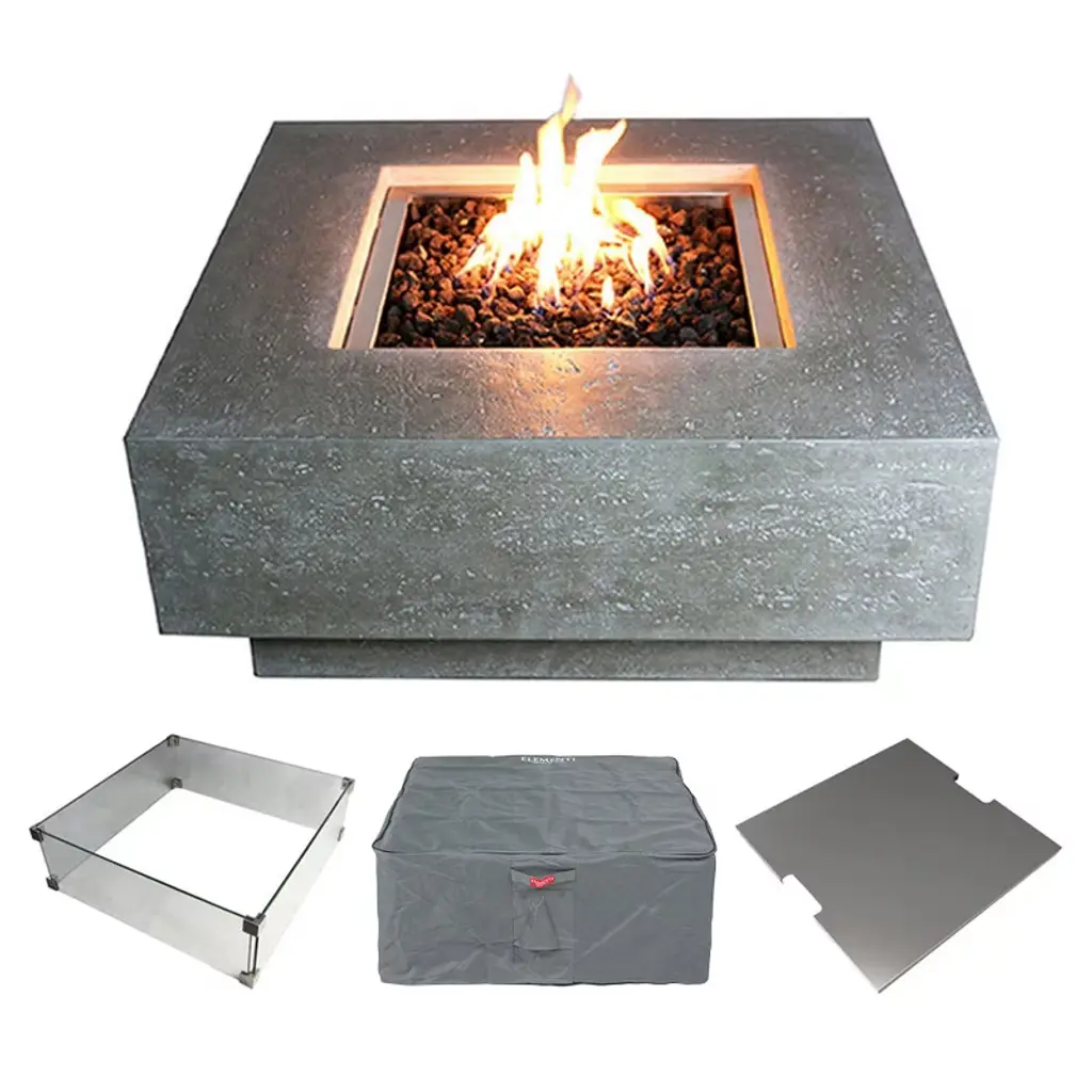 Tangkula Patio Terrazzo Fire Pit Table 50,000 Btu W/ Hideaway Propane Tank Table & Cover