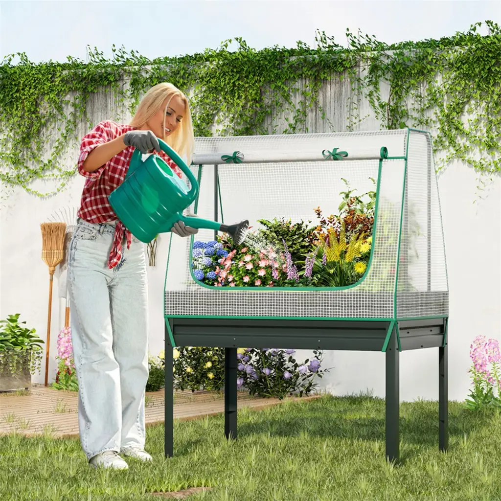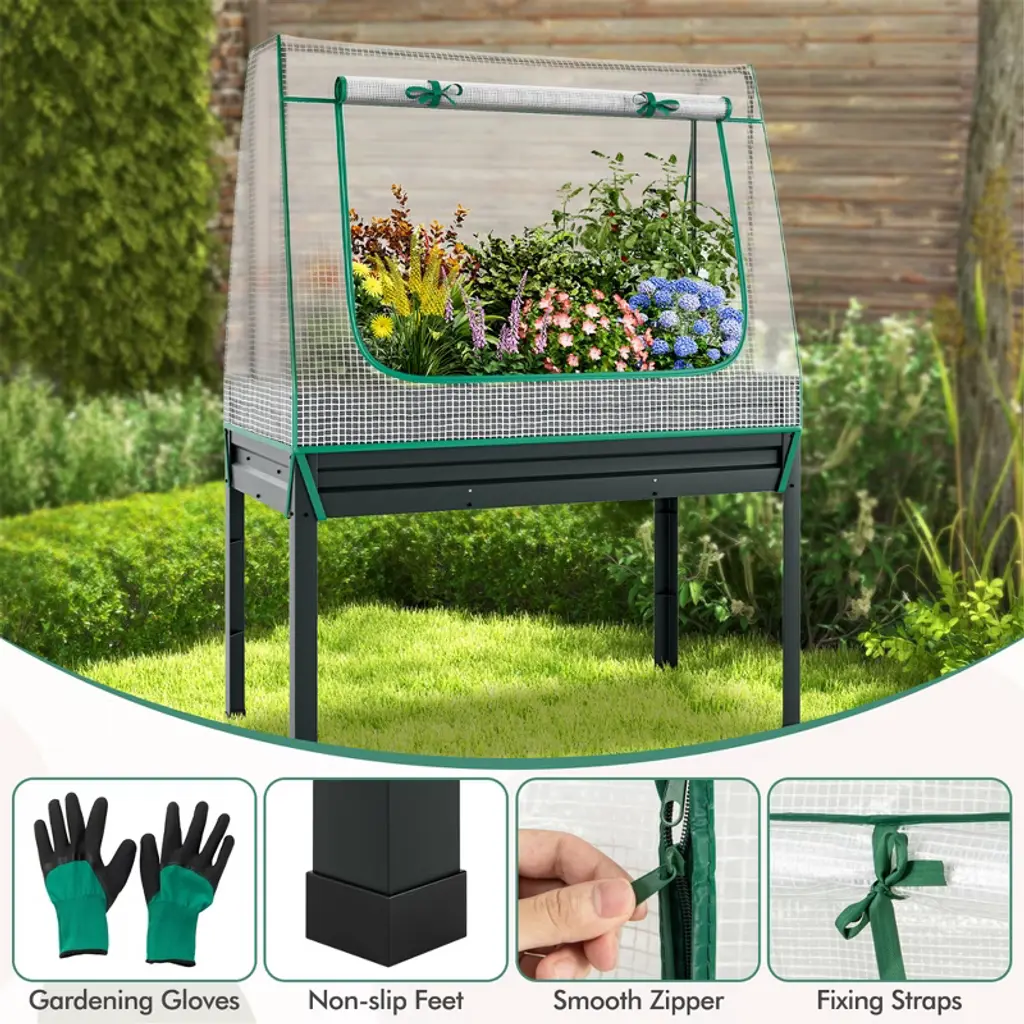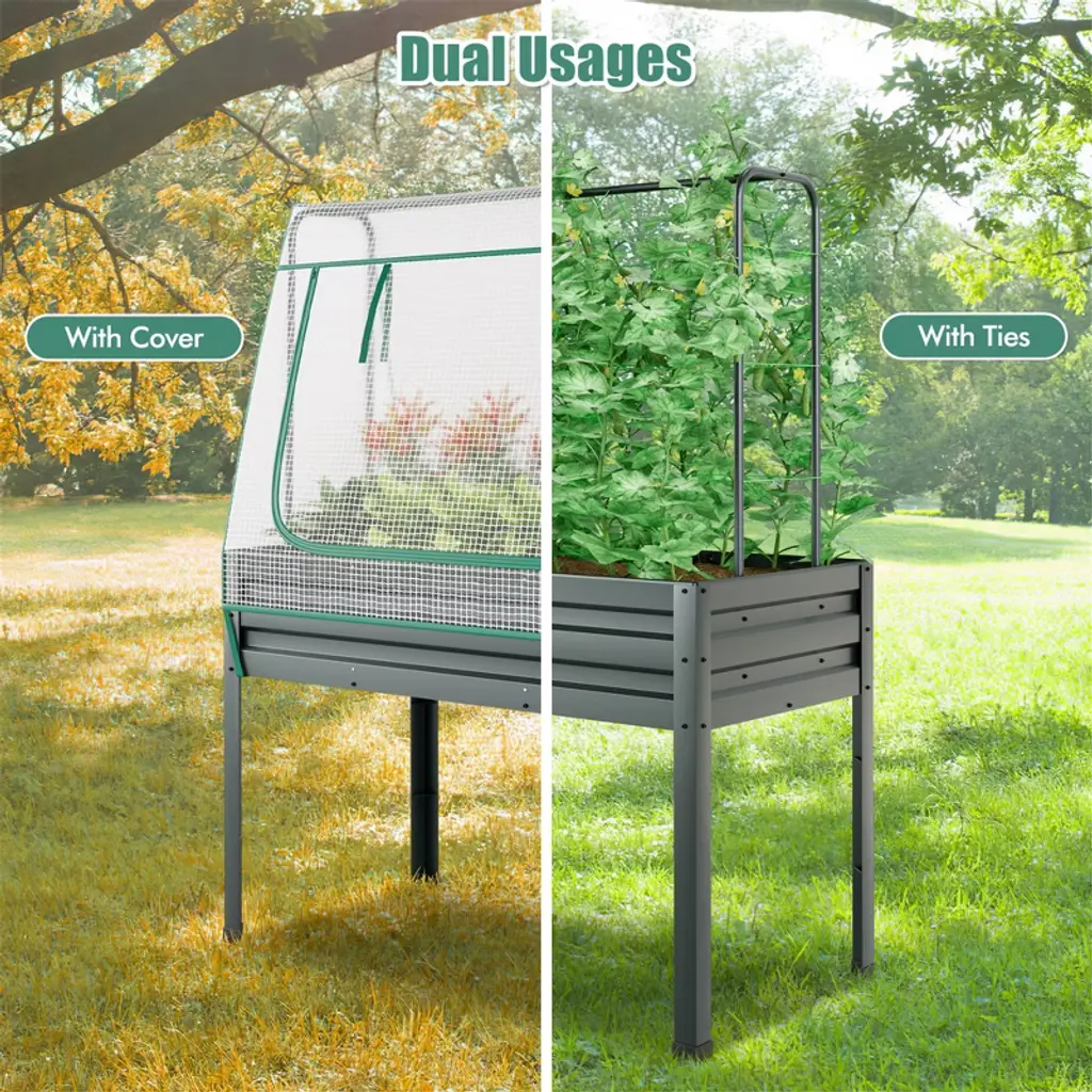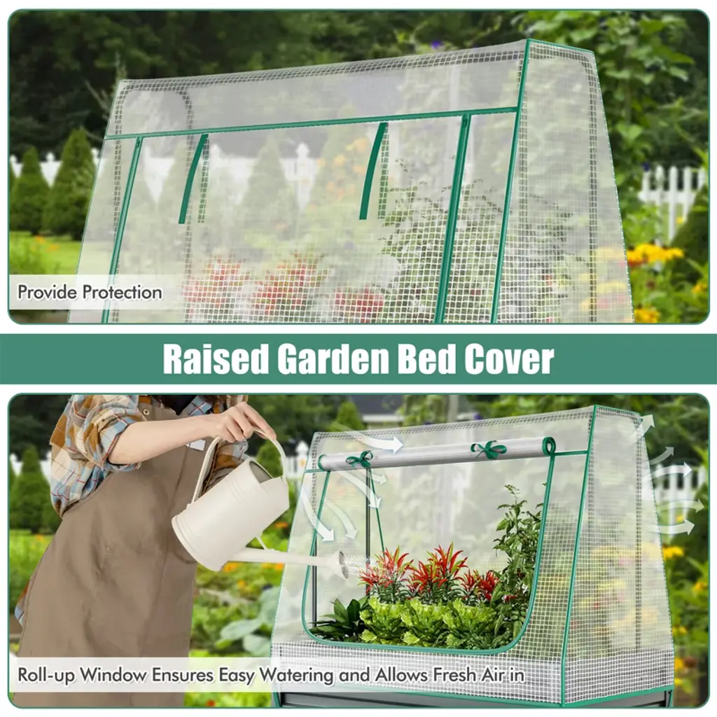 Tangkula Raised Garden Bed W/ Cover & Legs Roll-up Window Climbing Trellis Drainage Holes